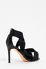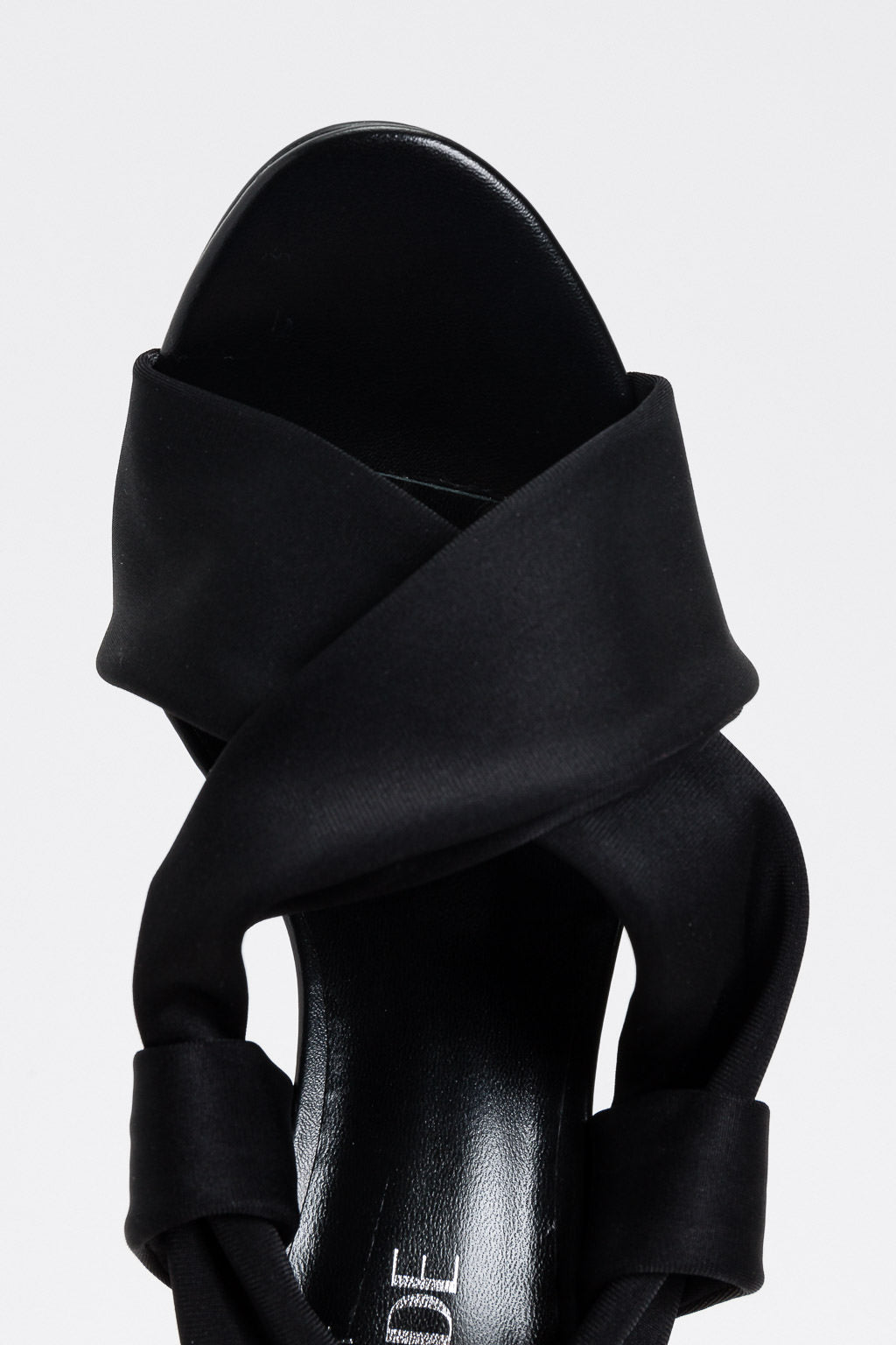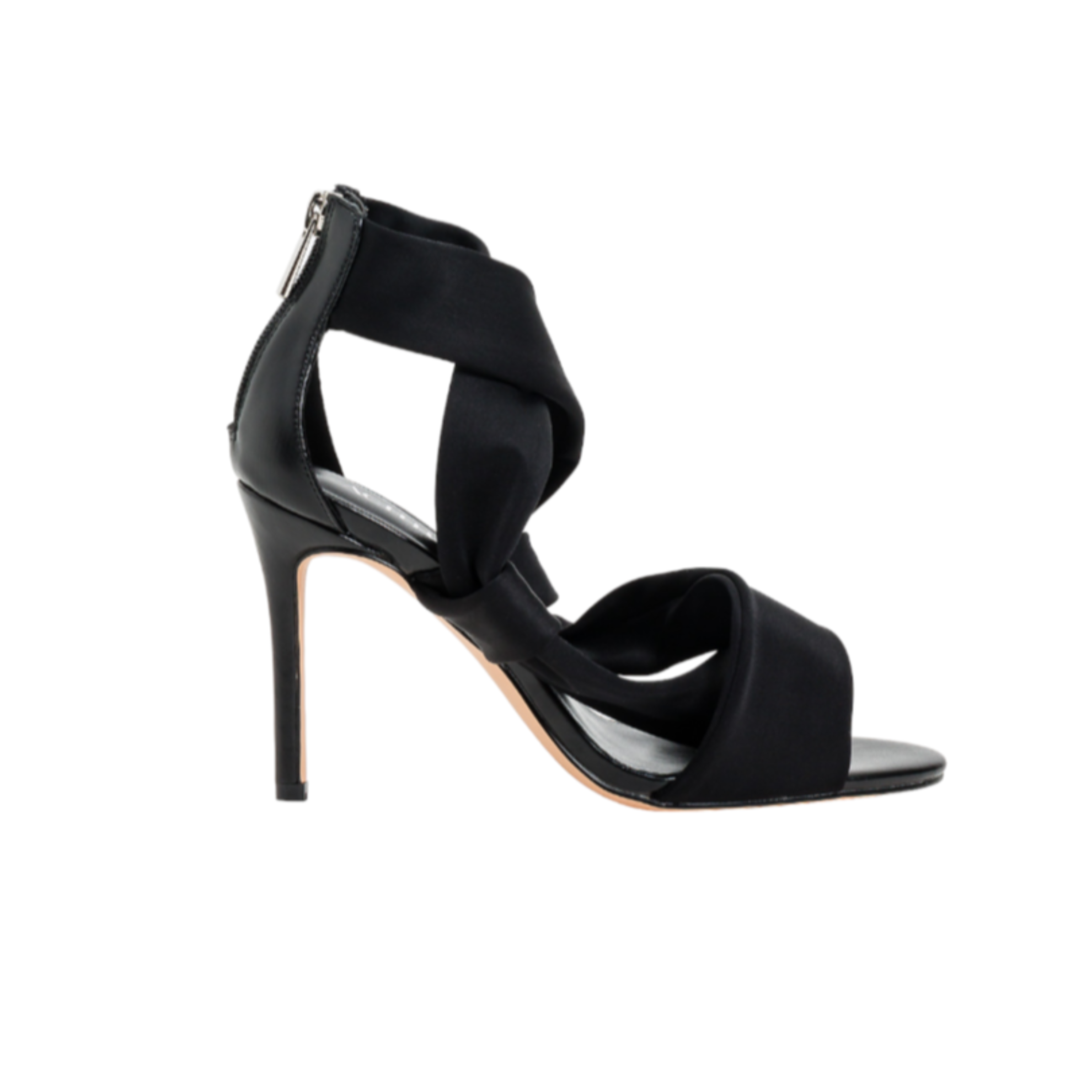 ACTITUDE TWINSET SANDALO aperto, intrecciato in raso, chiusura con zip sul retro, tacco alto.
