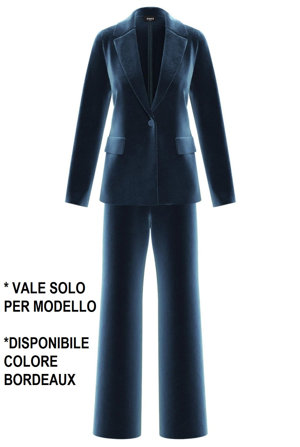 EMME MARELLA TAILLEUR in Ciniglia Stretch è disegnato con un blazer classico e raffinato, completo di colletto a dente e maniche lunghe. Il blazer è tenuto in posizione da un bottone e presenta tasche funzionali con patta. I pantaloni a vita alta offrono una silhouette elegante con una cerniera laterale invisibile per un maggiore comfort. Perfetto per qualsiasi ambiente professionale, questo set mette in mostra qualità e raffinatezza.