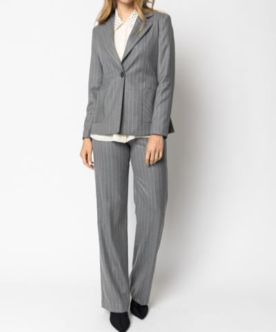 GIULIA VALLI TAILLEUR con giacca a un bottone, rever medio classico e tasche a toppa, abbinato a pantalone con tasche a filo, gamba regular, fondo dritto ed elastico in vita, per un look elegante e comodo, perfetto per ogni occasione formale o business.