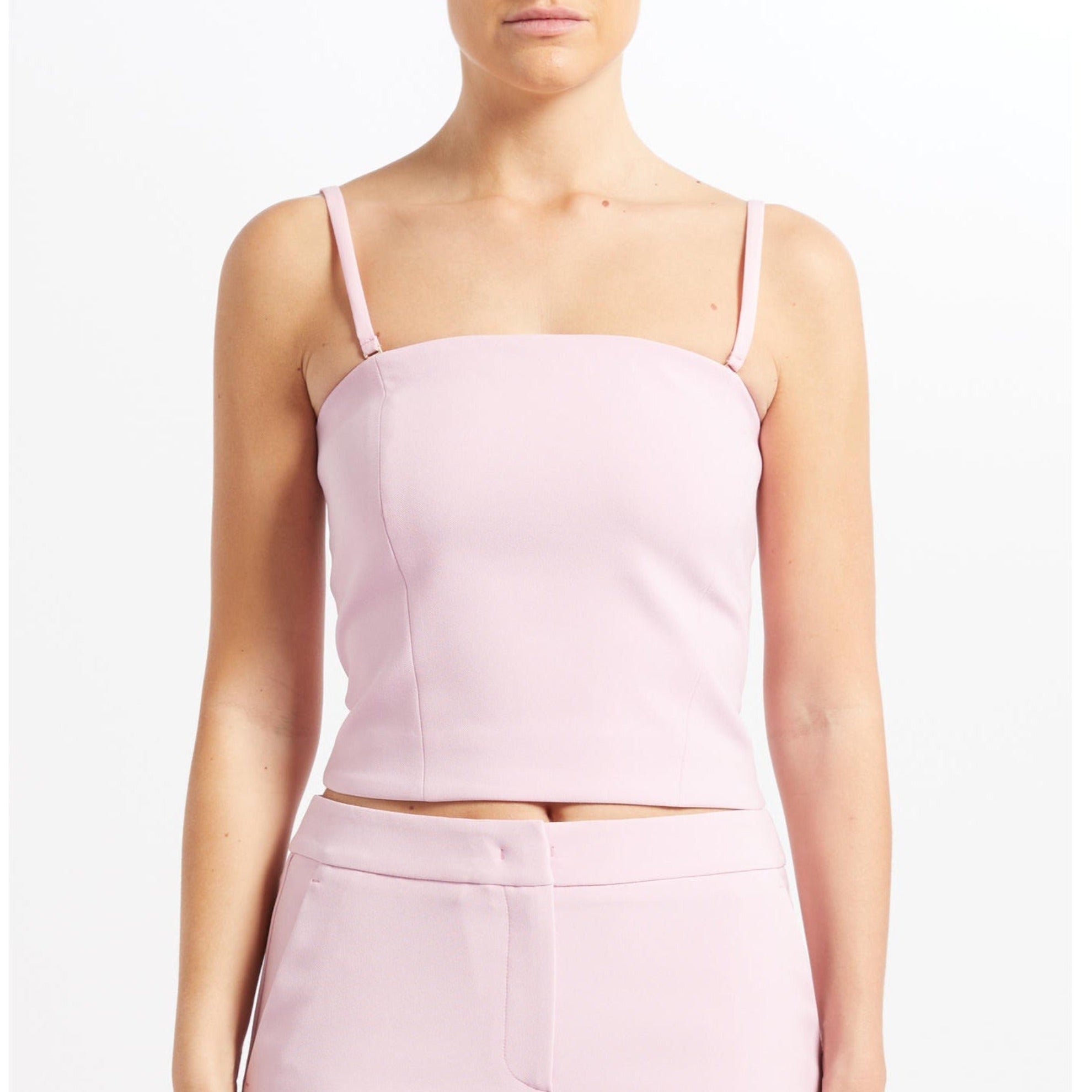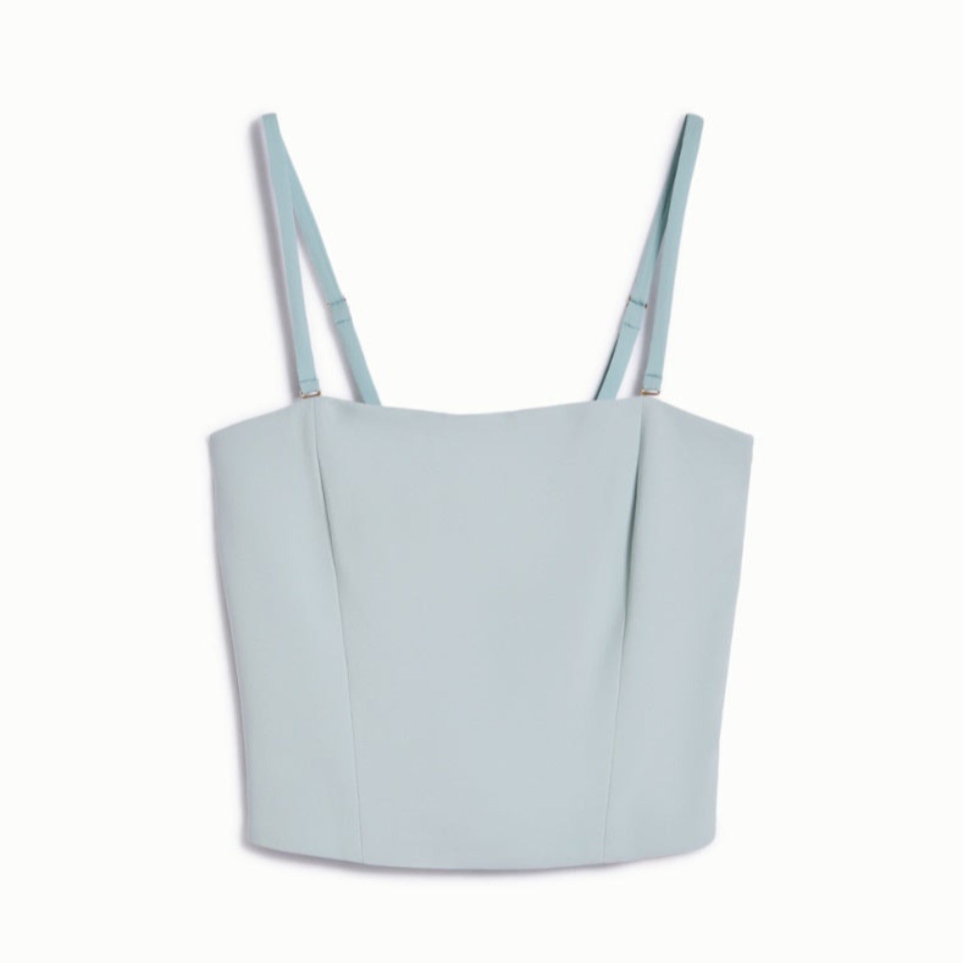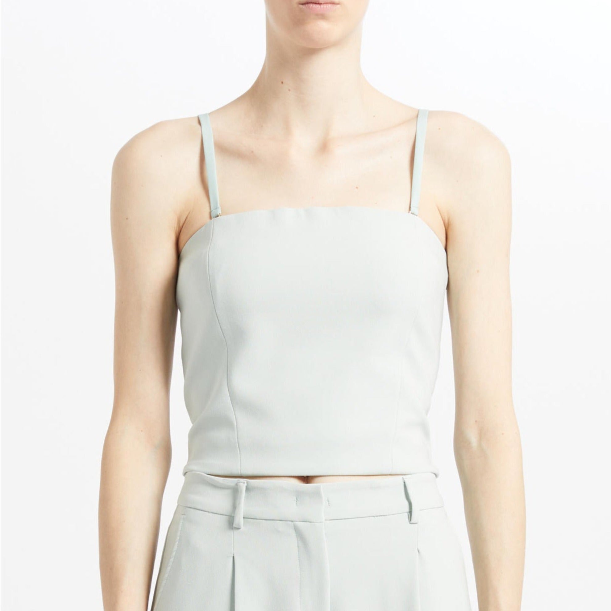 PENNYBLACK TOP in cady bi-stretch. Presenta un taglio aderente con lunghezza alla vita, spalline regolabili e staccabili, inserto elastico e bordo in silicone all’interno per un fit perfetto. Zip al fianco, foderato. Il sottogiacca più cool per i party suit di collezione.