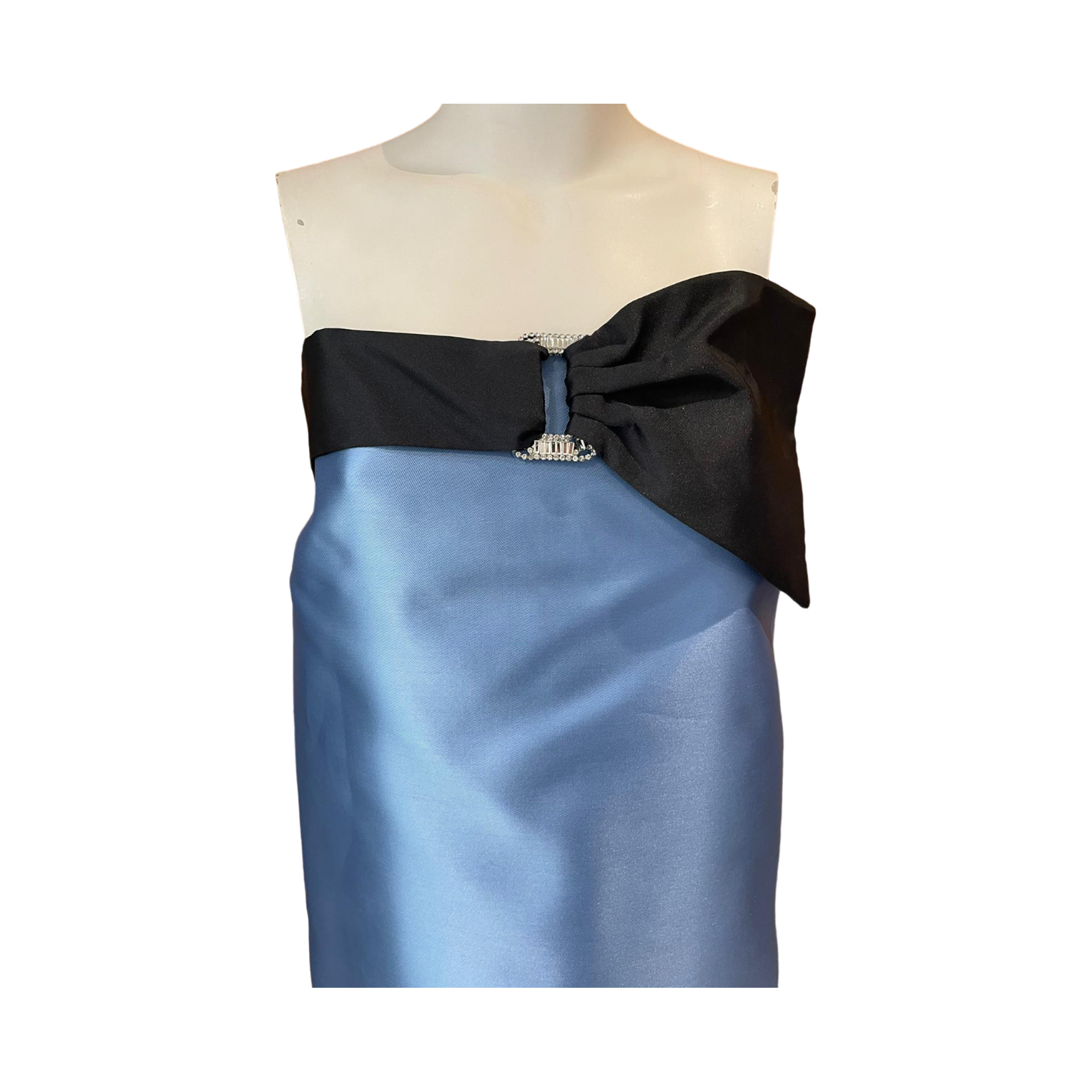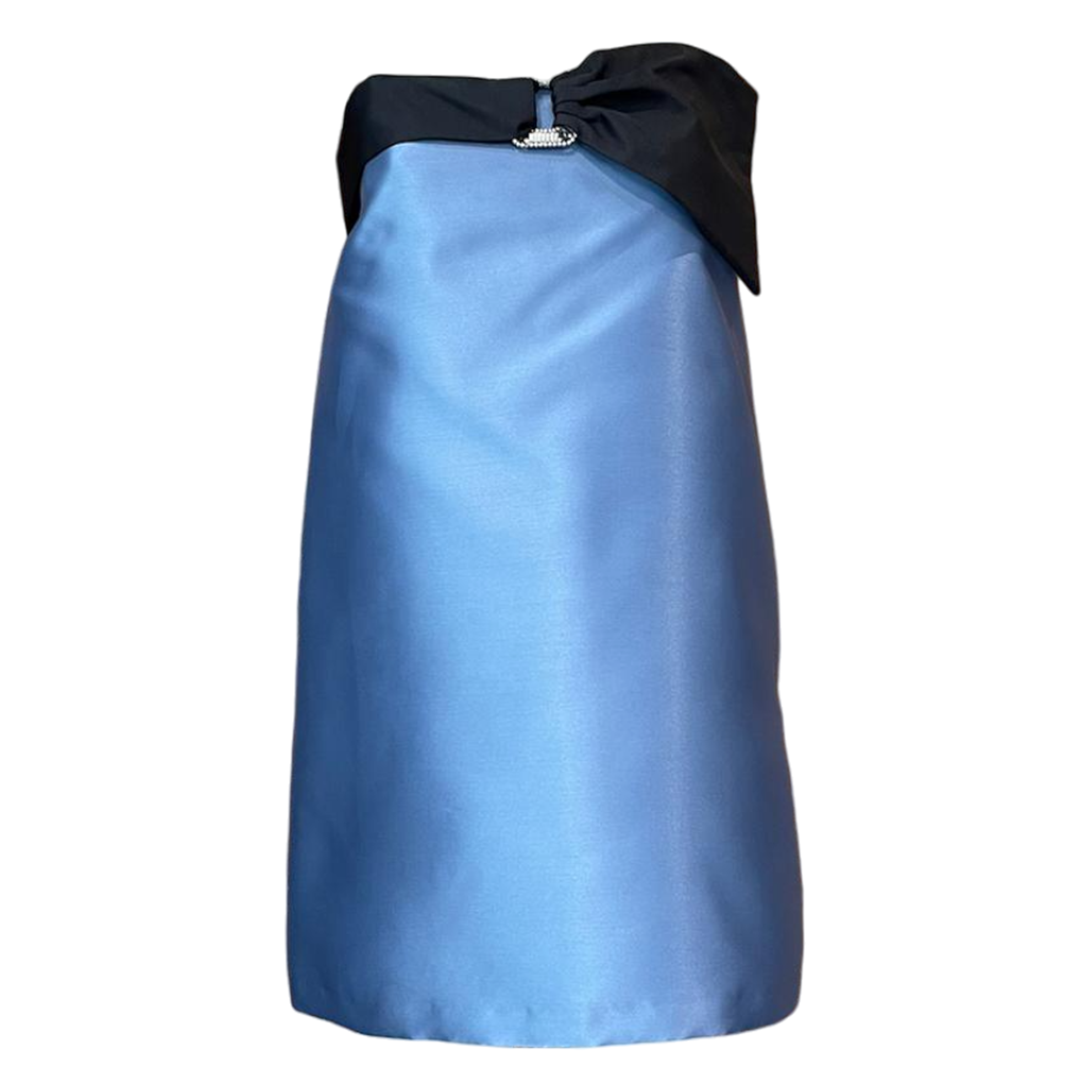 TOLERANCE ABITO in raso caratterizzato da un design senza spalline. Presenta un fiocco elegante nero con fibbia in metallo al centro e bottoncini sul retro e due tasche laterali nascoste. Questo capo elegante è perfetto per ogni occasione speciale, fornendo un look sofisticato e raffinato.