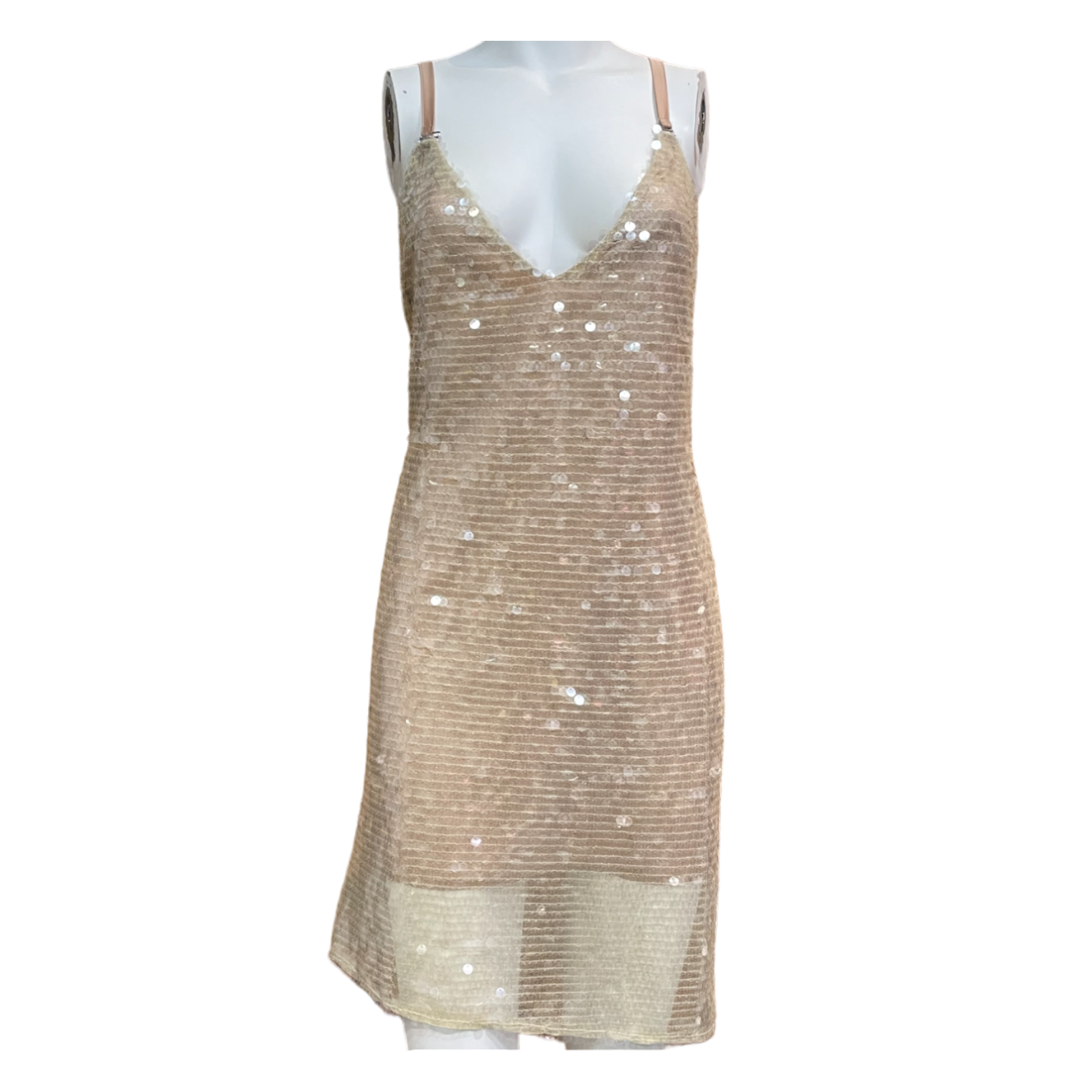 FELEPPA ABITO corto in paillette con bretelle e schiena scoperta. Realizzato con fodera più corta che lascia intravedere una parte della coscia. Sensuale ed elegante, questo abito è perfetto per un evento speciale o anche una serata in discoteca.