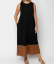 GIULIA VALLI ABITO da donna lungo bicolore, con scollo rotondo, senza maniche e caratterizzato da una vestibilità comoda. Un abito da indossare sia con i tacchi che con un sandalo basso.