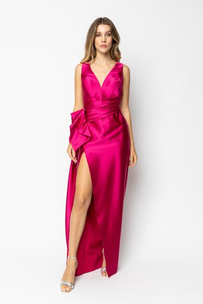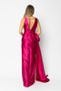 SOLOGIOIE ABITO da donna lungo in raso, con scollo a V, schiena scoperta, fascia plissettata in vita con fiocco laterale, spacco con strascico e stola in seta. Un abito elegante ma estremamente sensuale, perfetto per chi ama mettersi in mostra.