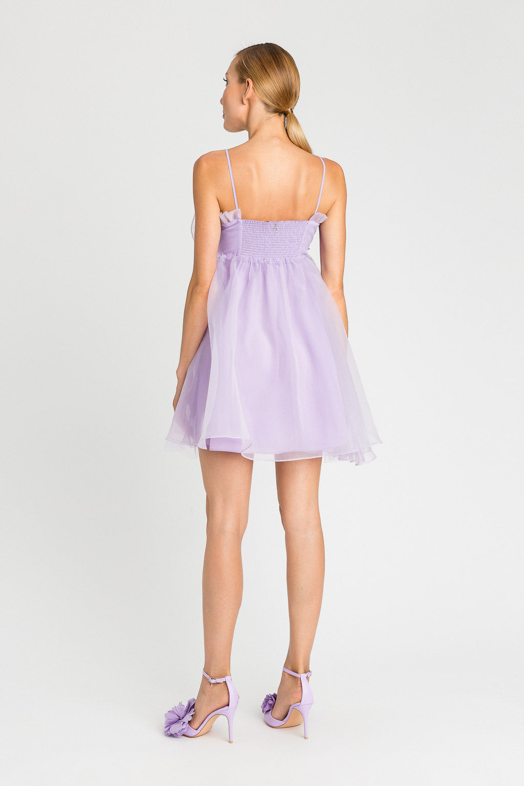 ACTITUDE TWINSET ABITO corto in organza con volant, spalline sottili, gonna a vita alta con arriccio, elastico sul retro e zip al fianco, scollo dritto davanti e dietro.