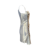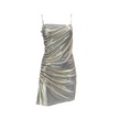 LE VOLIÈRE ABITO corto in lurex con bretelline, scollo a barca, drappeggio laterale con borchie in metallo, finale asimmetrico.