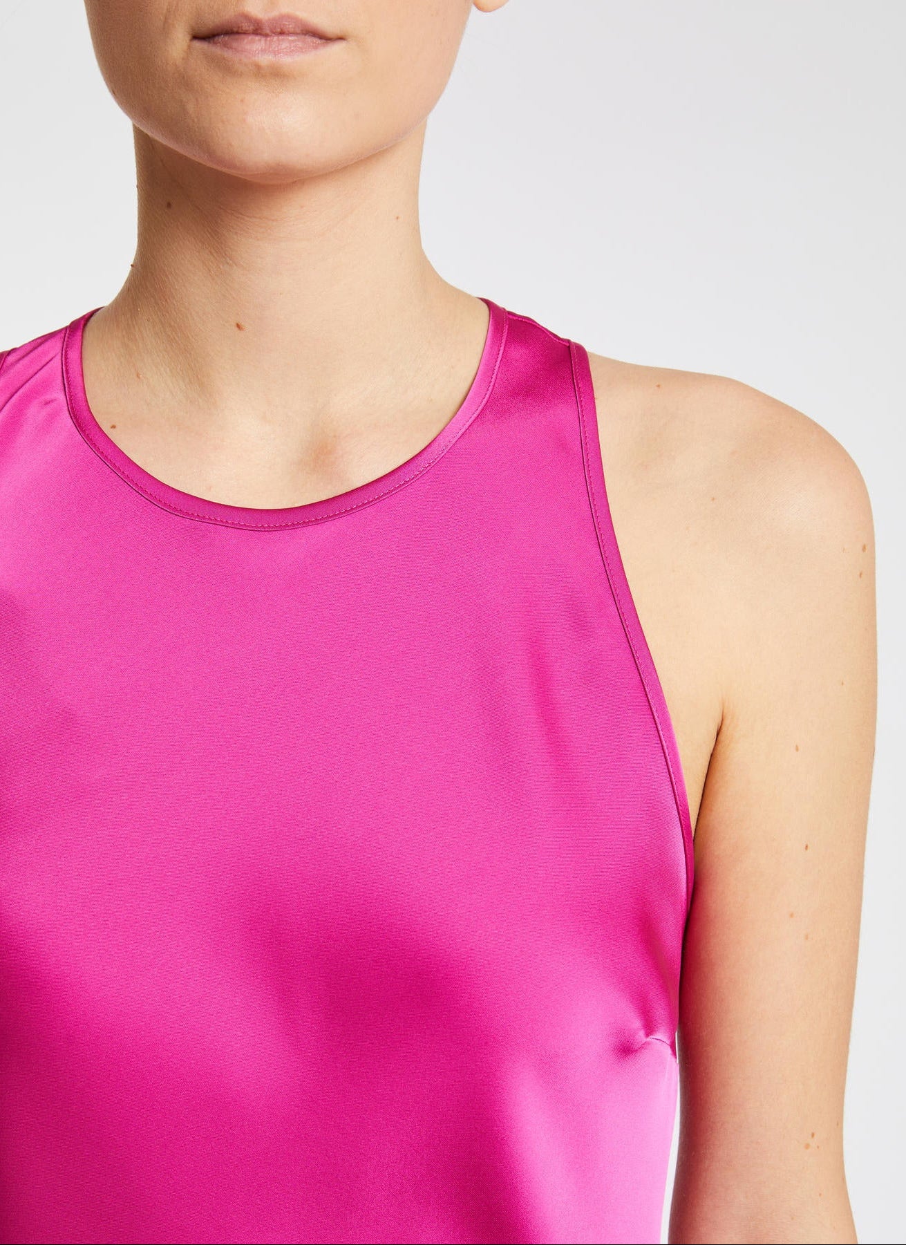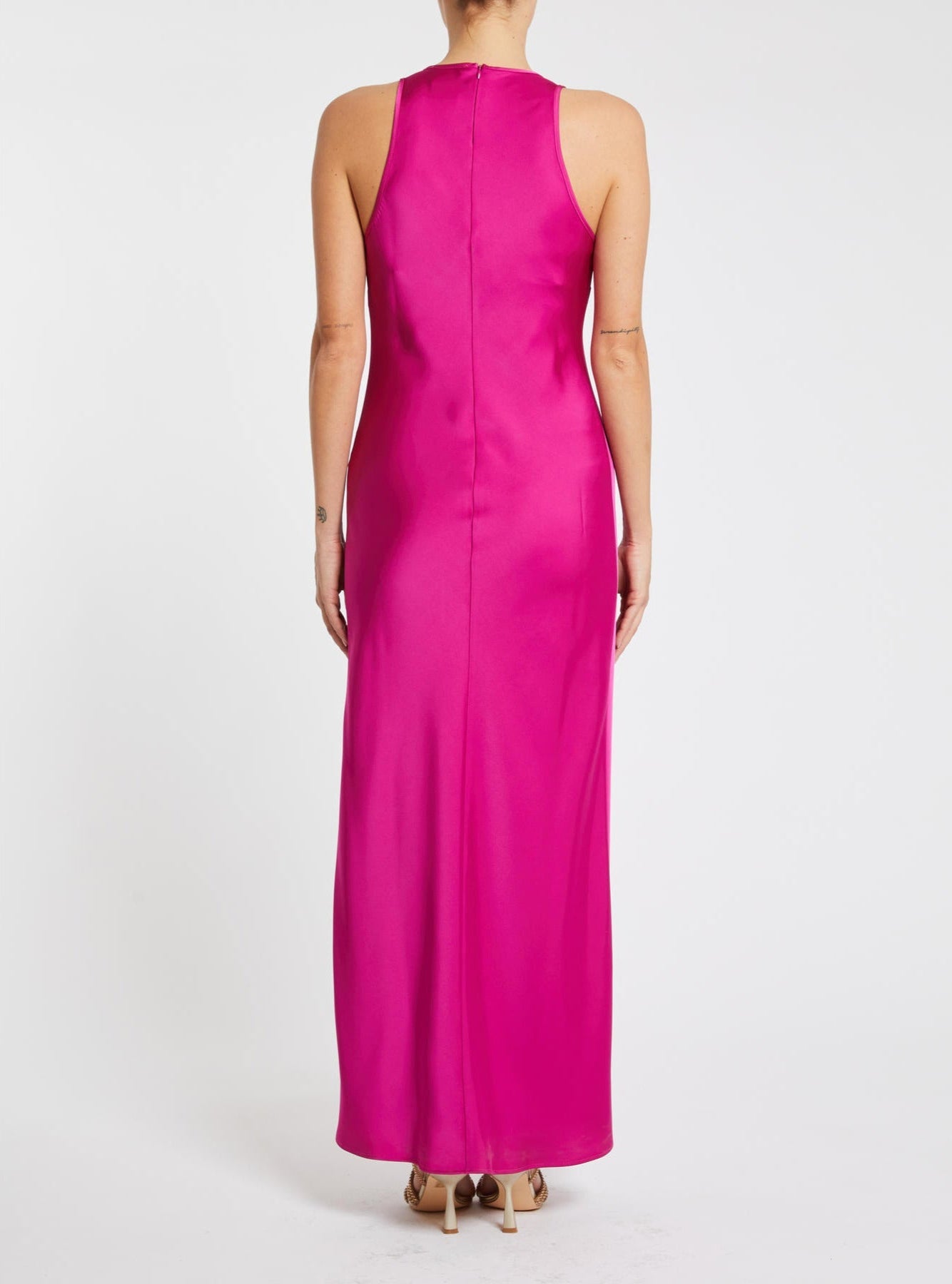 Abito Lungo Girocollo in Raso con Spalle all'Americana