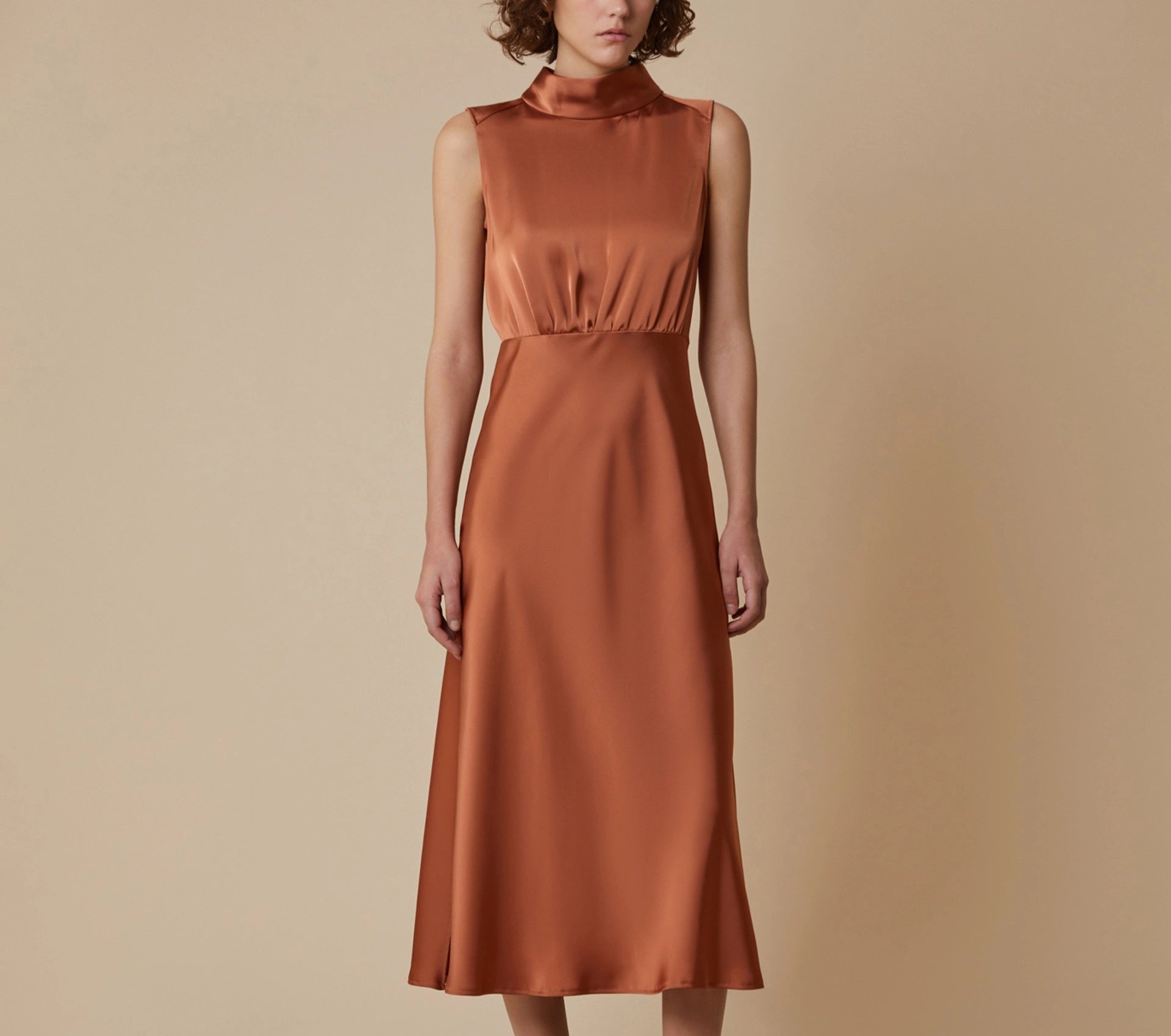 PENNYBLACK ABITO lungo in raso fluido, con una silhouette femminile e un'allure chic che lo rende perfetto per molteplici occasioni. Il top morbido con arricciatura e la vita delineata enfatizzano la figura, mentre la gonna svasata aggiunge movimento ed eleganza. Il collo alto con bottoncini e il dettaglio cut-out sul retro offrono un tocco sofisticato e moderno, completato dai spacchi laterali al fondo per un'aggiunta di freschezza e stile. La zip invisibile al fianco garantisce praticità, mentre il capo, sfoderato, mantiene una leggerezza perfetta per ogni stagione. Realizzato in poliestere riciclato, è anche una scelta eco-friendly, per chi desidera combinare eleganza e sostenibilità.