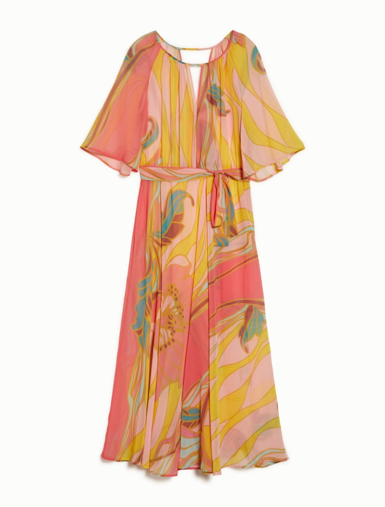 Abito etereo lungo in georgette a fantasia