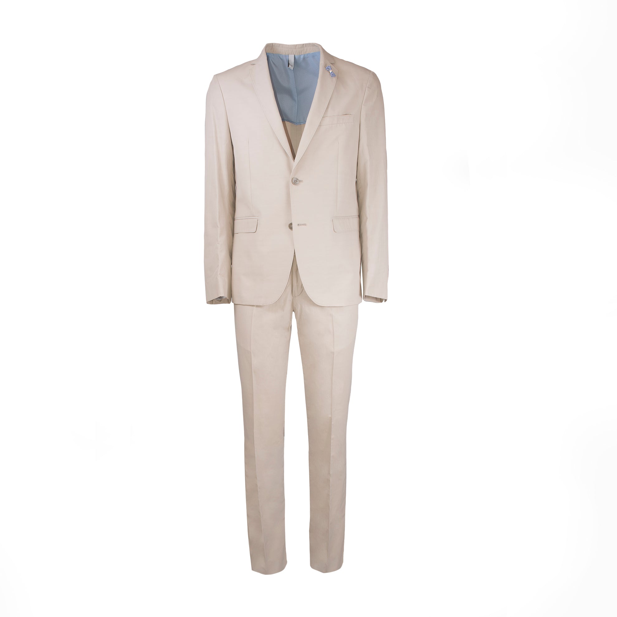 J.W. TABACCHI PANTALONE da uomo composto da giacca monopetto, con due bottoni a contrasto, tasche laterali con patta e taschino in alto, fiocco applicato sua uan delle due revers come simbolo distintivo e pantalone classico dalla linea dritta.