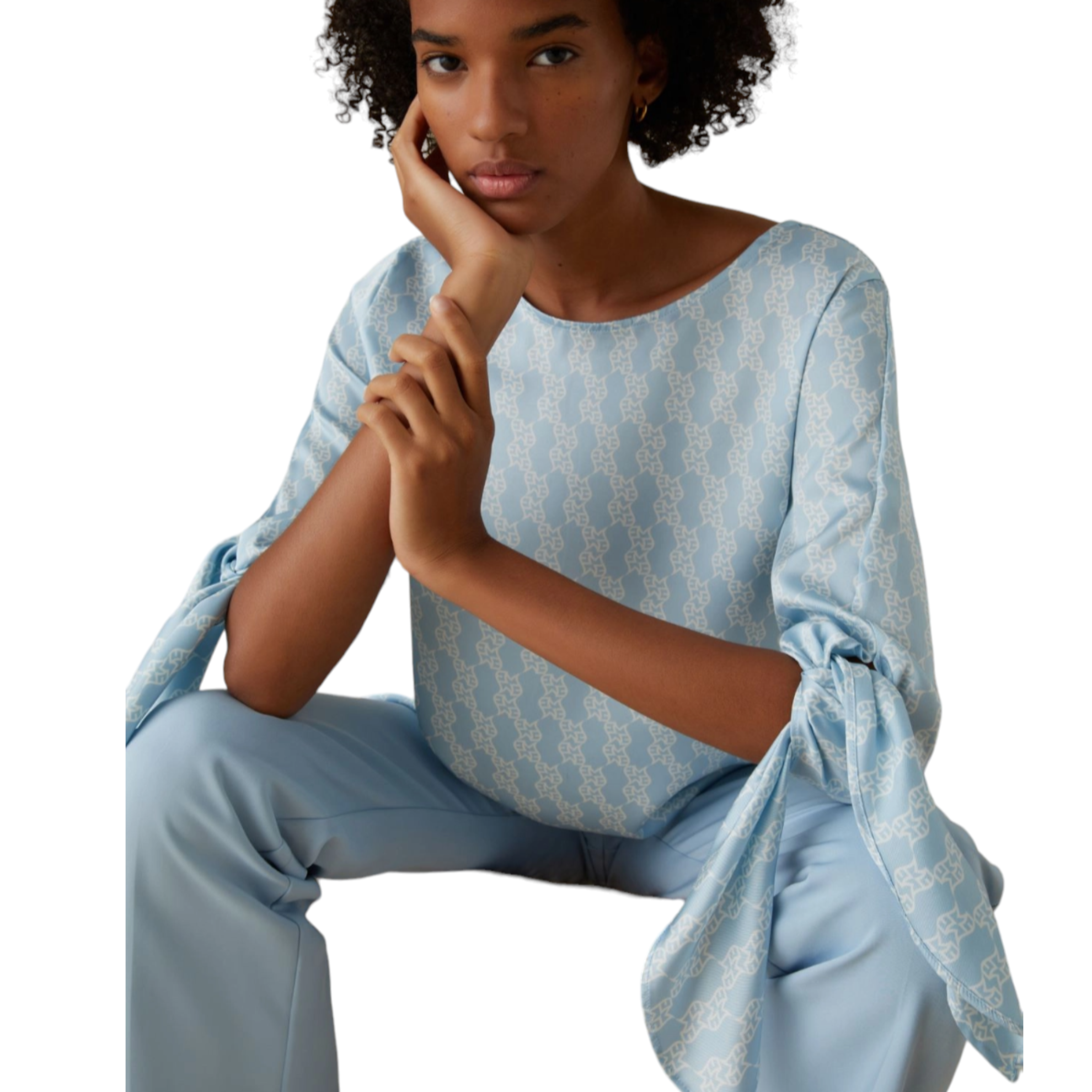 EMME MARELLA BLUSA in twill a fantasia. Caratterizzata da una linea dritta con fondo più lungo sul retro, scollo a barchetta, maniche a tre quarti con nodo sul fondo e spacchi laterali arrotondati. Questo capo aggiunge un tocco di eleganza e femminilità al tuo outfit.