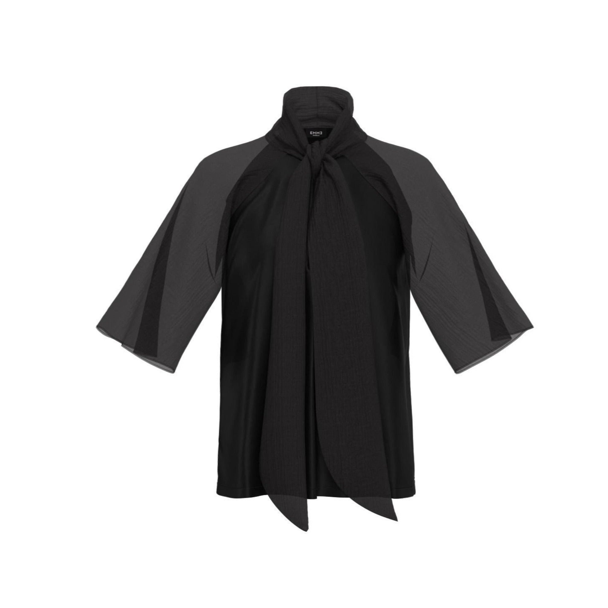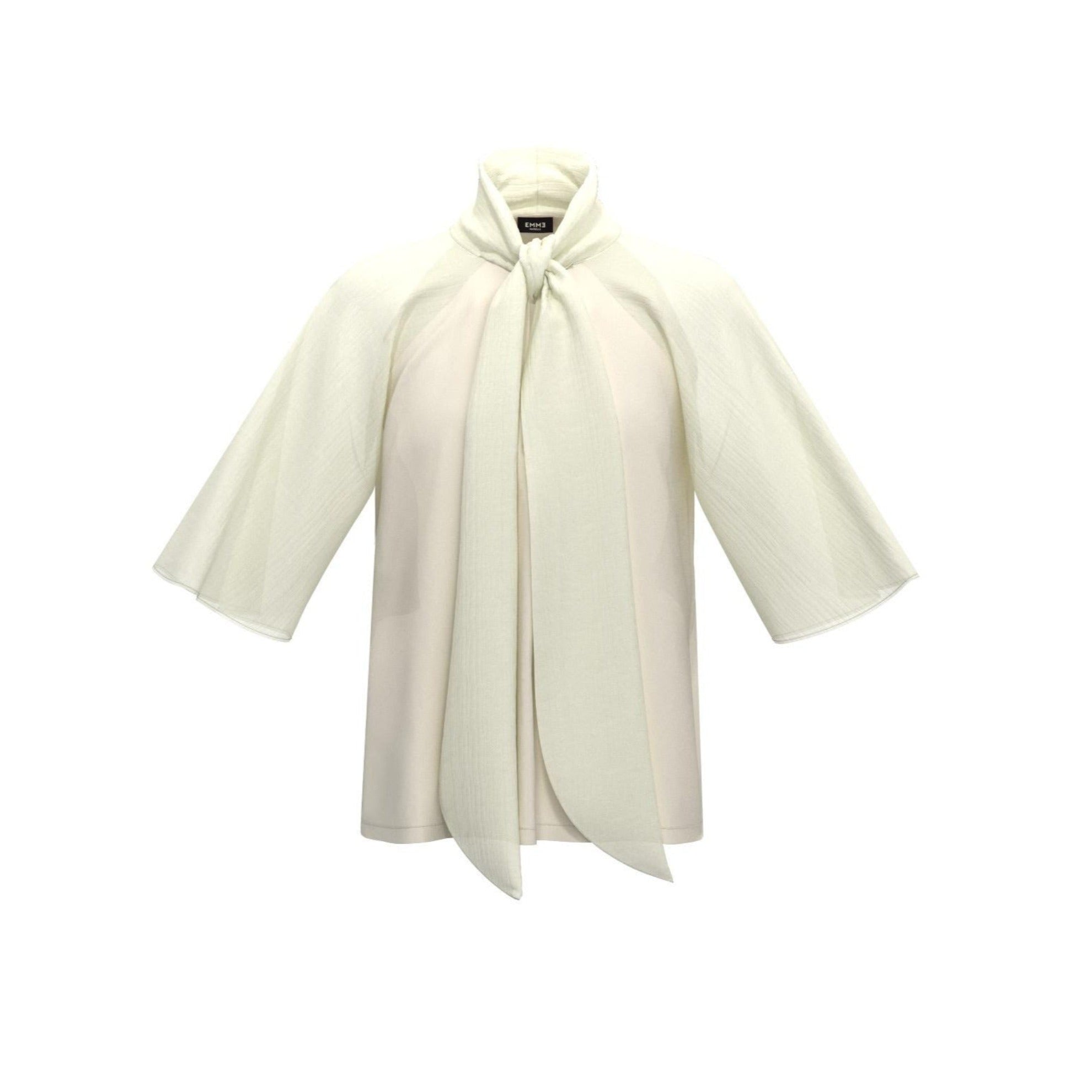 EMME MARELLA BLUSA corta con maniche a tre quarti, collo con fiocco e realizzata in un tessuto fresco e leggermente trasparente. Indossa questa blusa con un jeans o un pantalone classico per un look giornaliero.