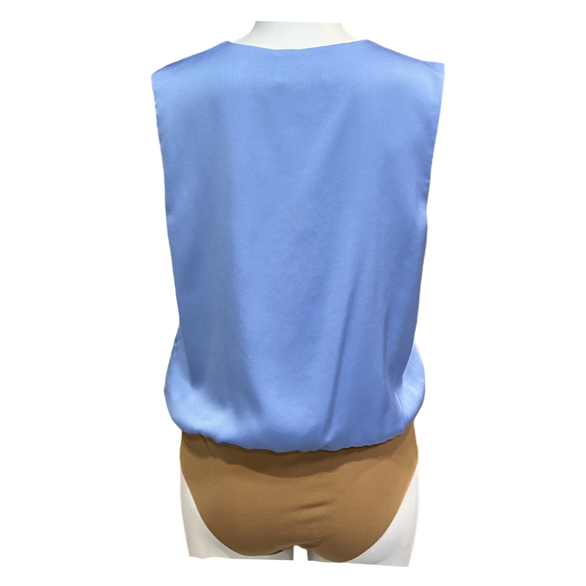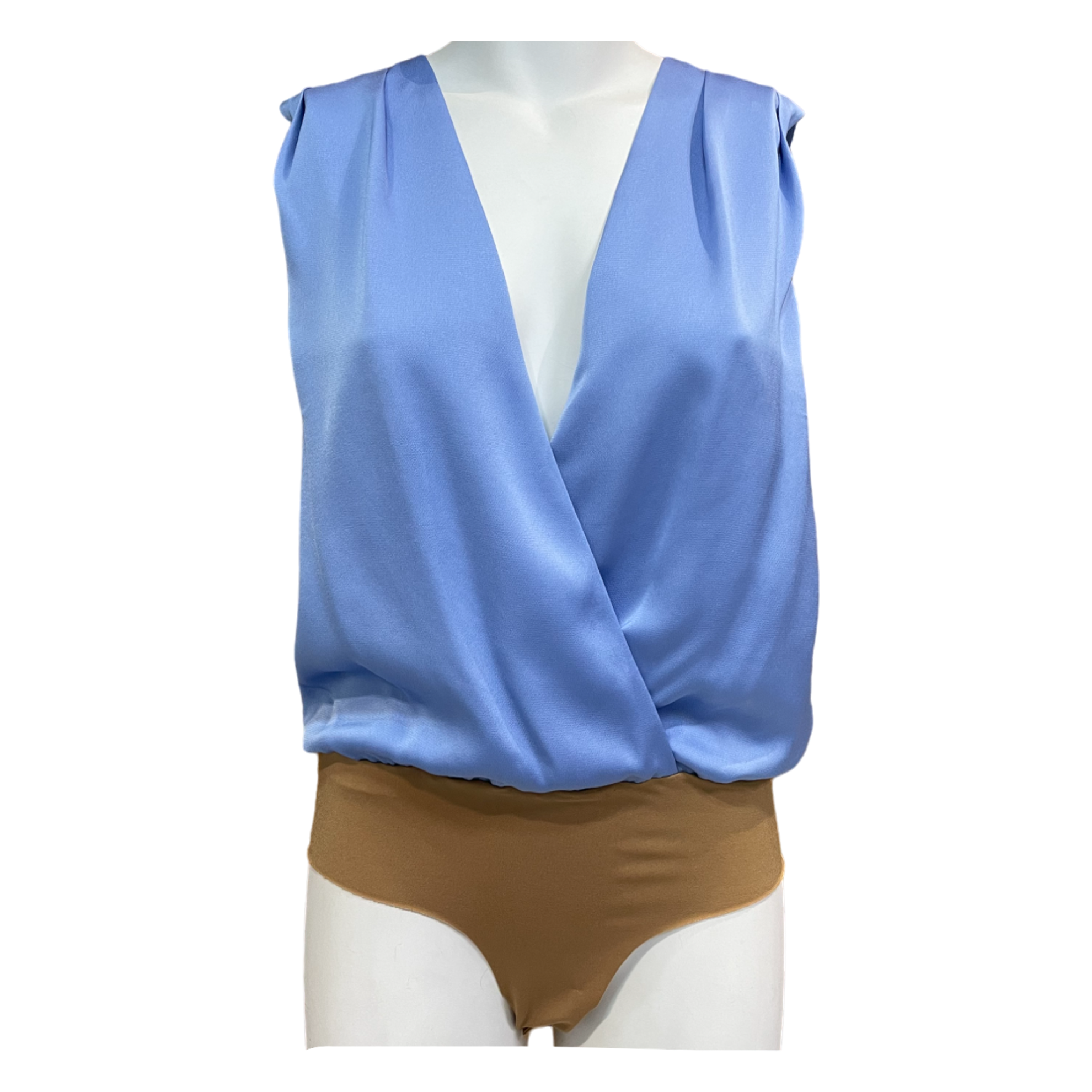 TOLERANCE TOP modello body con scollo profondo incrociato, senza maniche. Semplice ma raffinato, questo body è abbinabile perfettamente ad un tailleur per un look elegante e di classe.