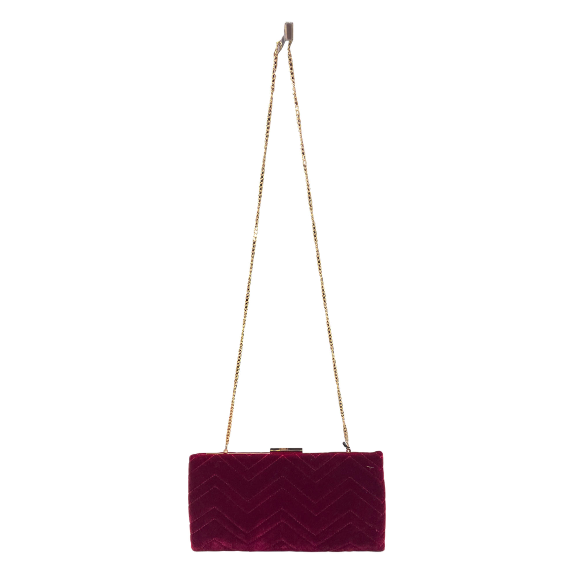 OLGA BERG BORSA clutch in velluto stampato, vanta una lunga e delicata catena dorata. Adatta a qualsiasi evento formale, emana un'aria di eleganza e raffinatezza, rendendolo l'accessorio perfetto per qualsiasi outfit serale.