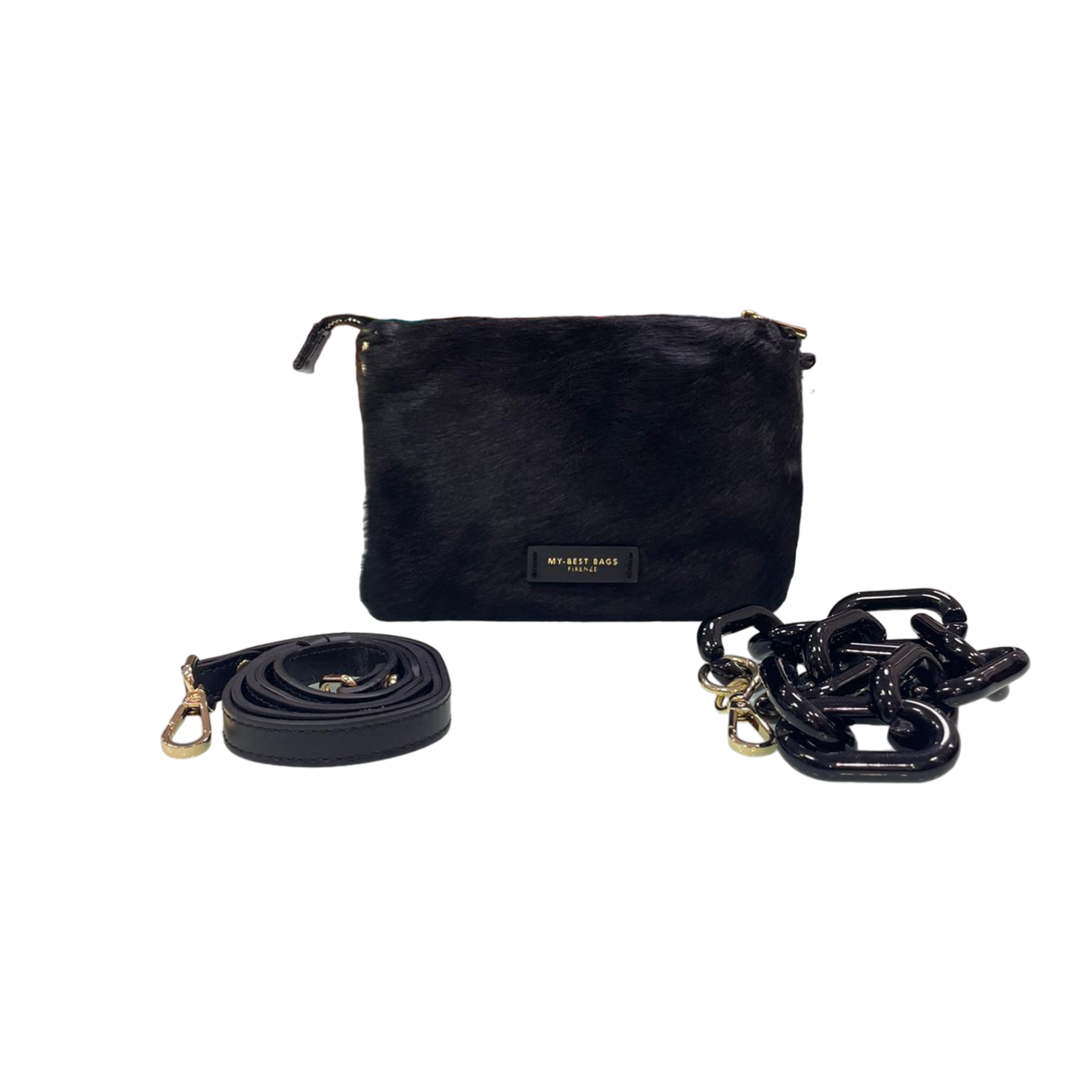 MY BEST BAGS BORSA in cavallino con chiusura a zip, disponibile in diversi colori. Presenta 3 scomparti interni, una tracolla regolabile e un manico a catena in PVC. Il logo è stampato frontalmente su un'etichetta in pelle. Versatile e sofisticata, accompagnerà diversi tipi di outfit.