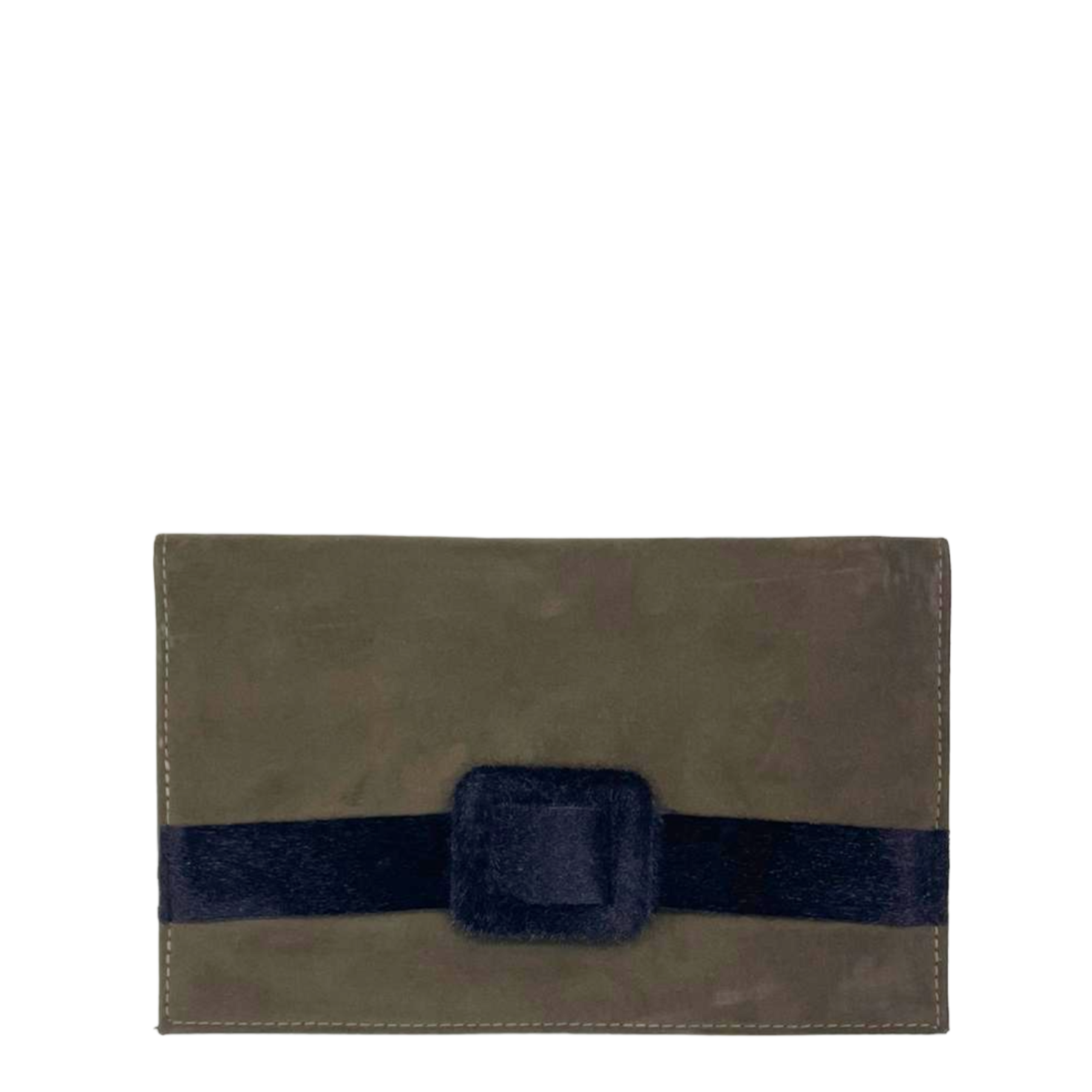 TOLERANCE BORSA in pelle scamosciata con chiusura clutch e cintura in pelliccia nera. Disponibile in diversi colori, questa sofisticata pochette è caratterizzata da un design perfetto per un' occasione importante: sarà un accessorio indispensabile per una serata fuori.