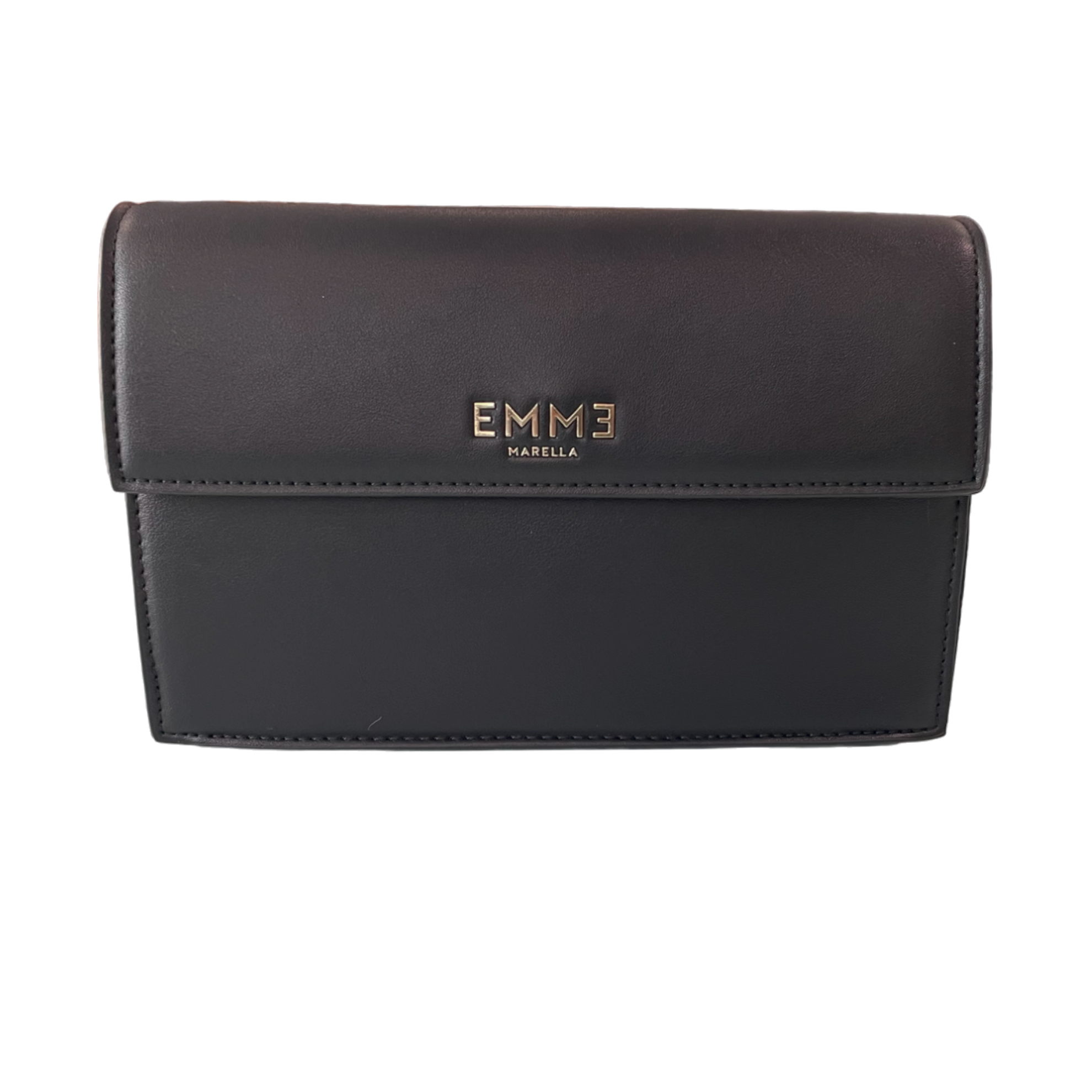 EMME MARELLA BORSA in pelle nera con chiusura clutch. Caratterizzata da un design minimal, con unico dettaglio del logo in stampa dorata. Presenta una tracolla rimovibile. Semplice ma funzionale e, soprattutto, abbinabile a qualsiasi outfit, giornaliero e serale.