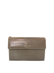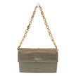 EMME MARELLA BORSA in pelle pitonata color verde oliva. Presenta un design squadrato con chiusura clutchy, una tracolla a catena in oro e un'altra interna regolabile. Elegante e raffinata, conferirà un tocco di stile al tuo look.
