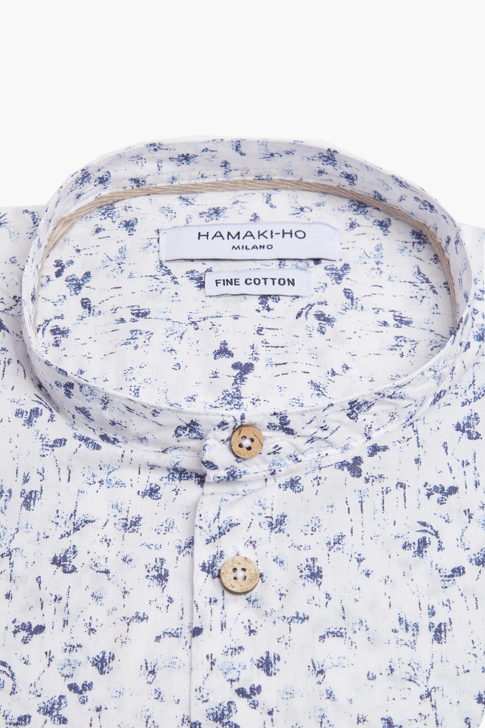 HAMAKI-HO CAMICIA da uomo in cotone, a fantasia, a manica lunga, con collo coreano, con bottoncini in legno. Fresca e alla moda, indossa questa camicia per un look casual durante una calda giornata estiva.