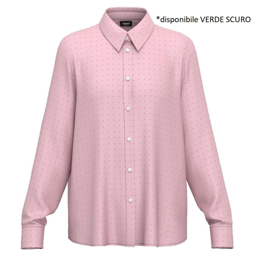 EMME MARELLA CAMICIA in raso stretch con applicazioni di strass dalla linea dritta. Collo a camicia, maniche lunghe con polsino e bottone. Chiusura con bottoni nascosti.