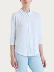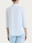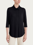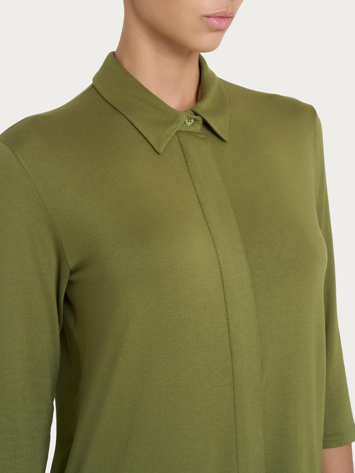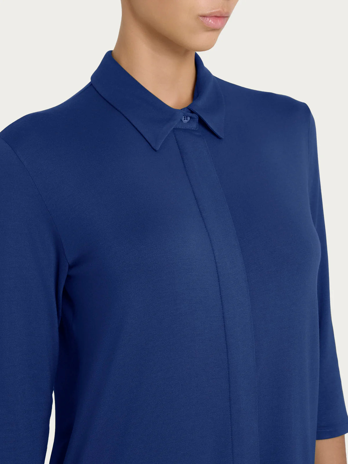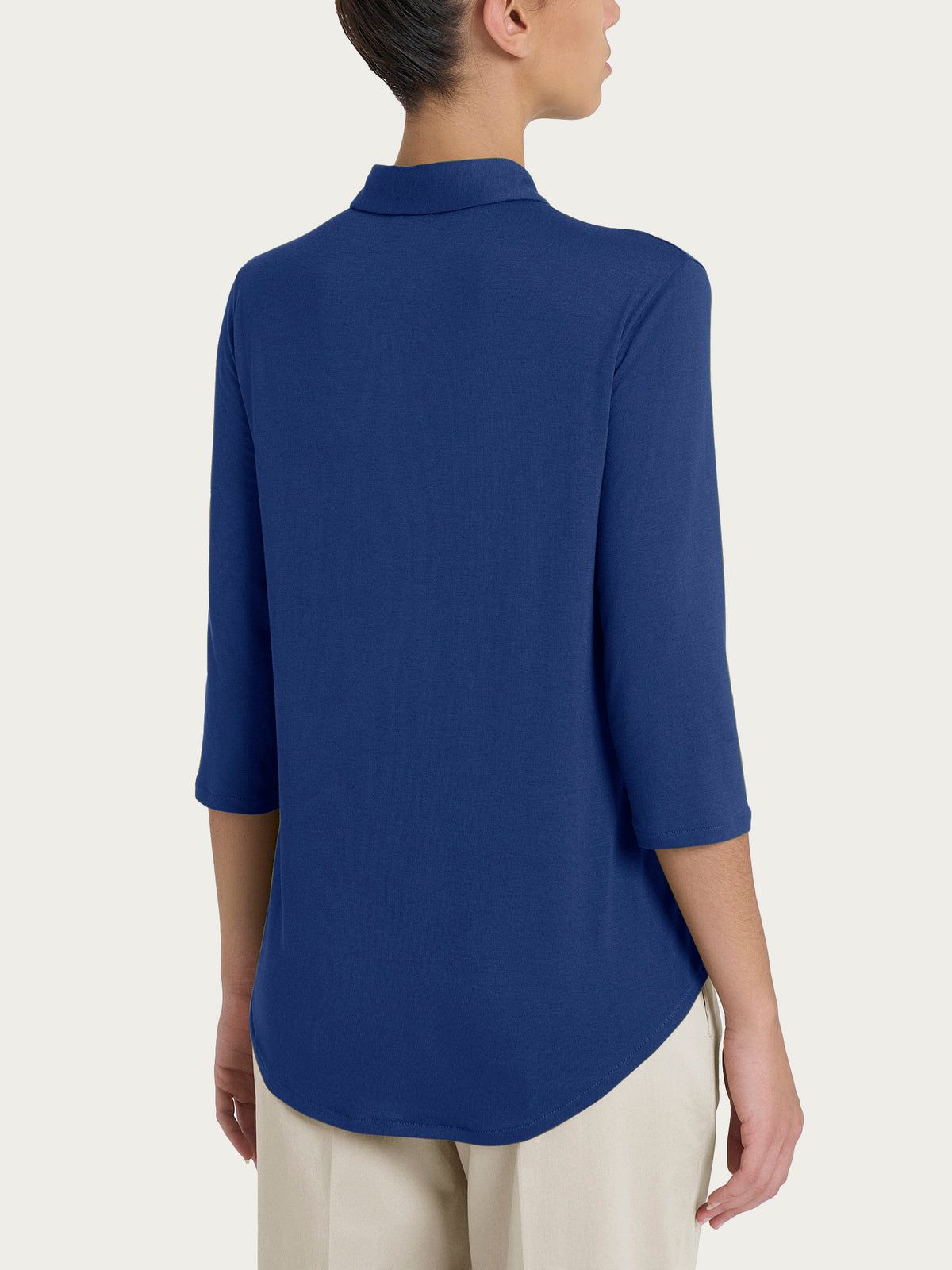 RAGNO CAMICIA da donna con manica 3/4 realizzata in fresco e traspirante jersey elasticizzato di viscosa. Con un delicato colletto, la classica chiusura a bottoni e la manica lunga è un modello versatile e facile da abbinare. Caratterizzata dalla manica 3/4 che la rende il capo perfetto per affrontare l'estate e da una copertura dei bottoni che rende il design minimalista e pratico. La vestibilità è soft, caratterizzata da un fit generoso e cascante per vestire al meglio tutte le fisicità.