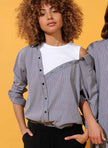 KARMA CAMICIA realizzata in leggero tessuto misto cotone, offre una vestibilità over che garantisce libertà di movimento senza rinunciare allo stile. Il design presenta un colletto camicia, un'abbottonatura asimmetrica e una lunghezza più corta sul davanti, mentre il retro è più lungo per un effetto di sovrapposizione elegante. I spacchetti laterali aggiungono un tocco moderno e dinamico, rendendo questa camicia perfetta per un look casual ma raffinato.