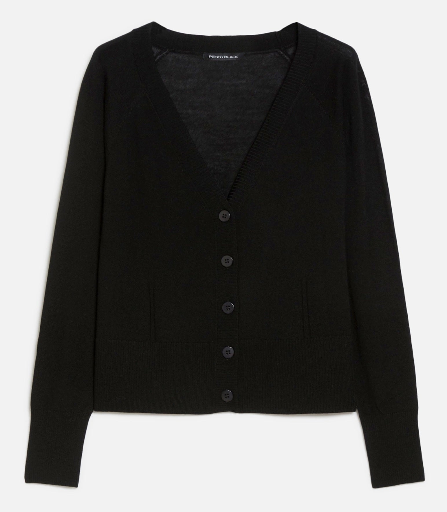 PENNYBLACK CARDIGAN cardigan in pura lana sottile con ampio scollo a V e maniche raglan. Ha una vestibilità regolare con linee diritte. Lavorazione rasata con dettagli a effetto tridimensionale sul davanti e bordi alti a costine.