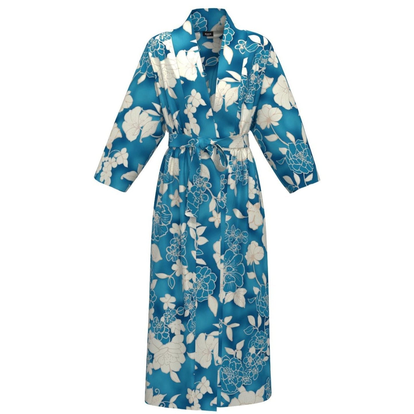 EMME MARELLA ABITO in twill a fantasia con collo sciallato, maniche a tre quarti, linea ampia a vestaglia. Sfoderato, senza bottoni e cintura coordinata. Frescone dal design primaverile.