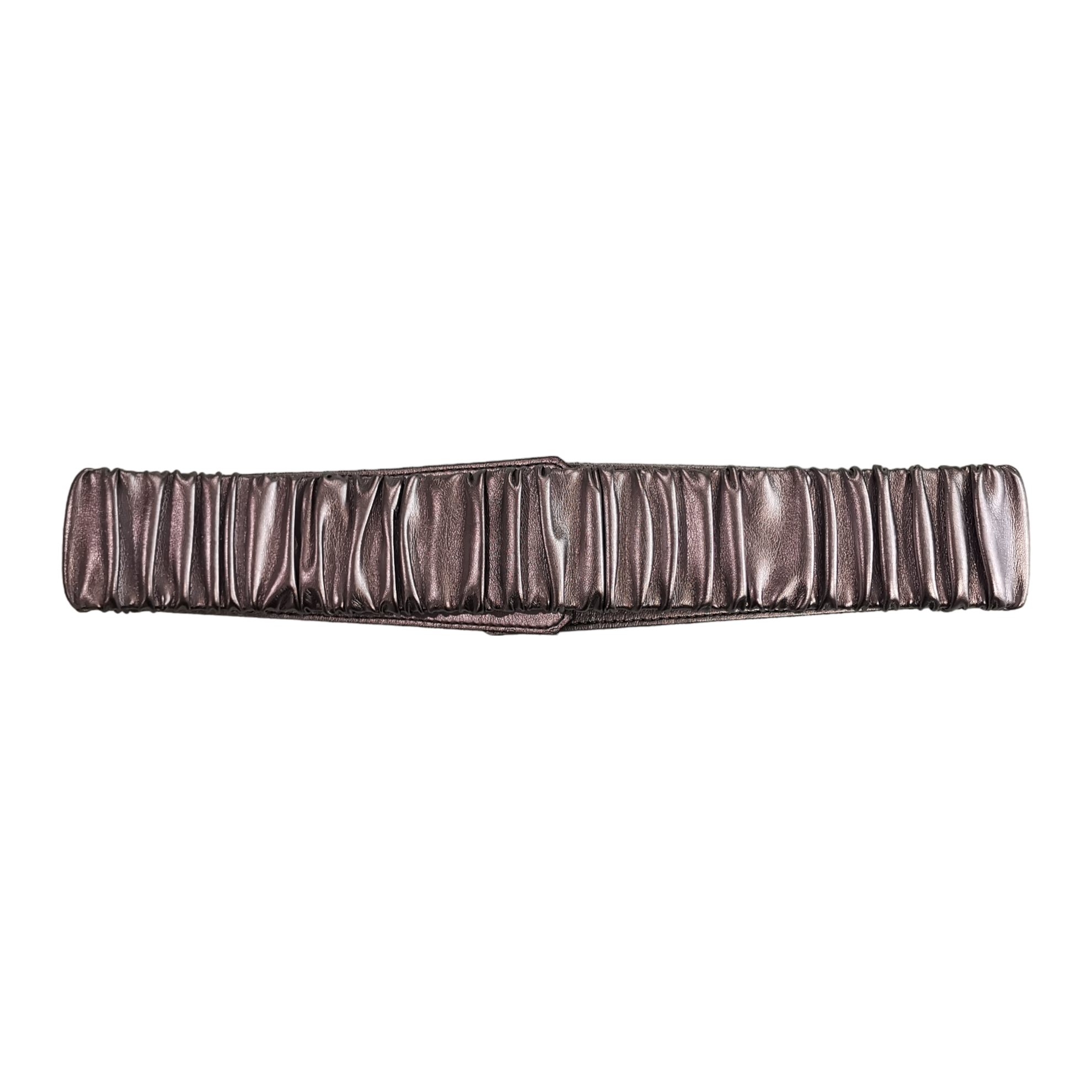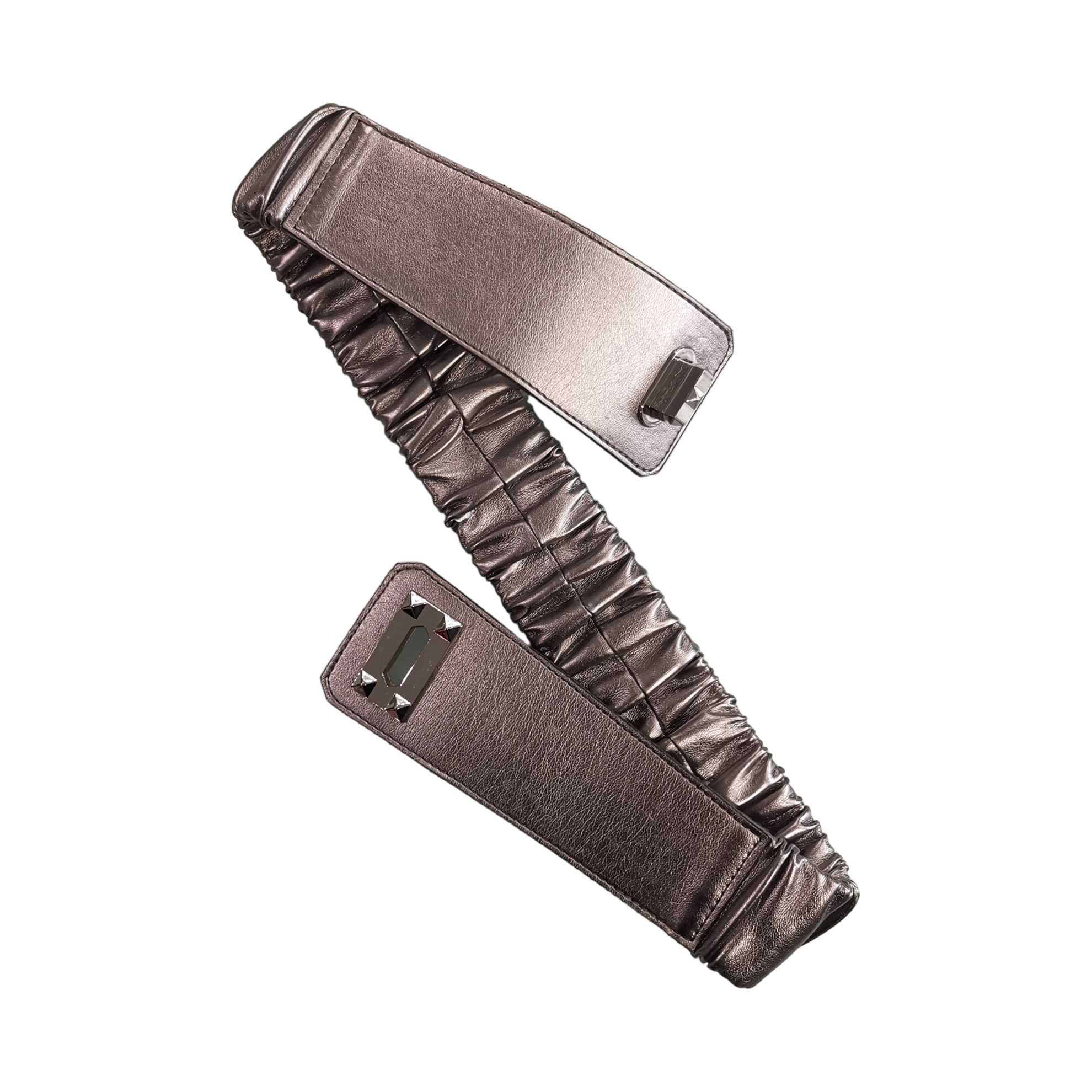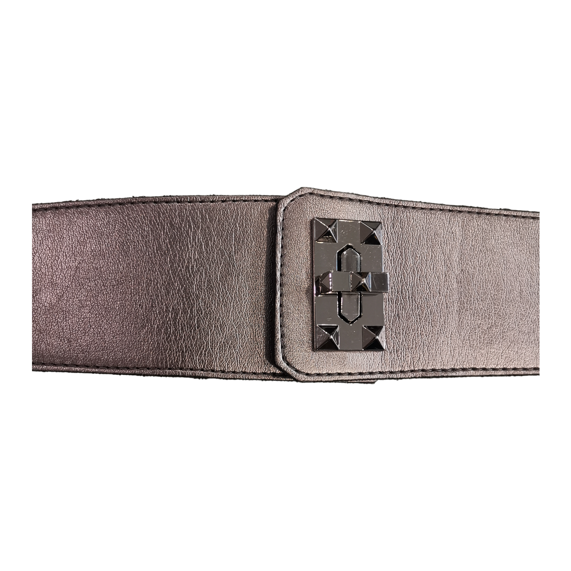 MR & MRS T CINTURA in ecopelle rosa metallizzata co in fibbia a lucchetto in acciaio. Perfetta per aggiungere un tocco di stile ad un outfit total black. Realizzata con una fascia elastica nella parte posteriore per un maggiore comfort.