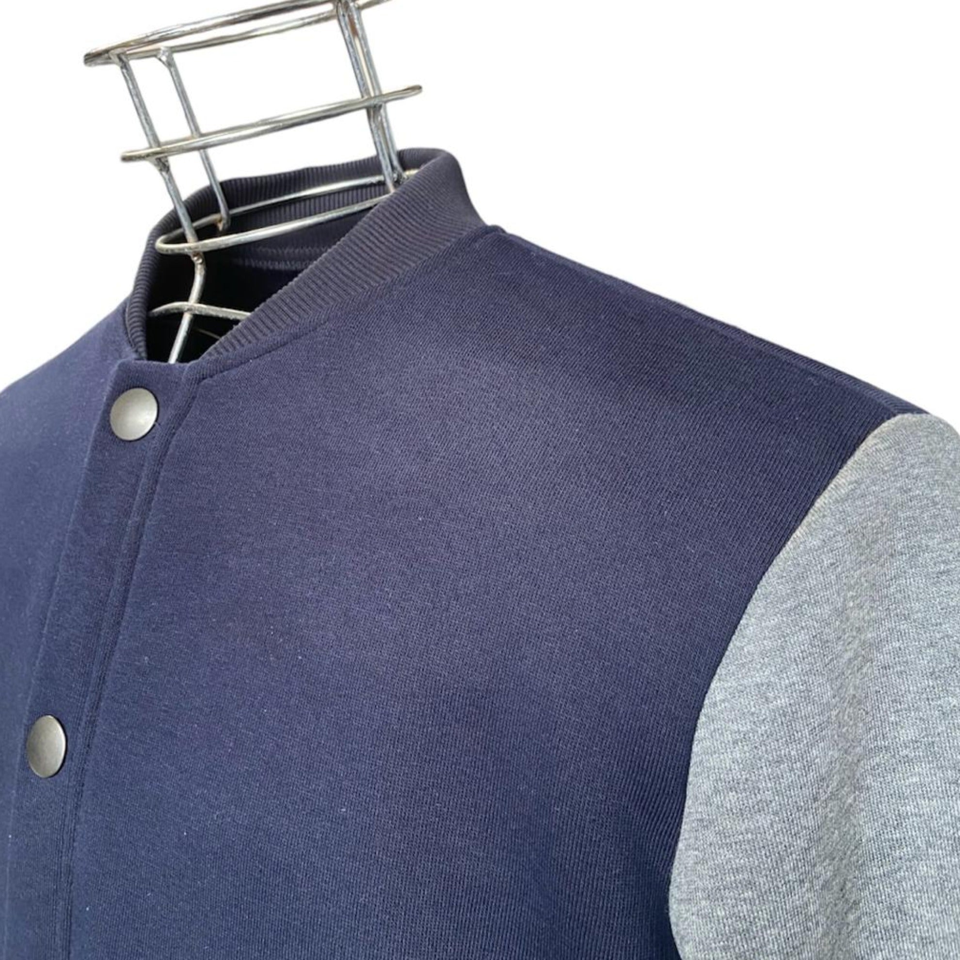 ALESSANDRINI GIUBBOTTO felpato modello College. Presenta maniche in grigio mentre il resto è in blu. Con un design senza colletto e chiusura con bottoni a clip, puoi indossarlo con un jeans e un paio di sneakers per un look sportivo e di tendenza.