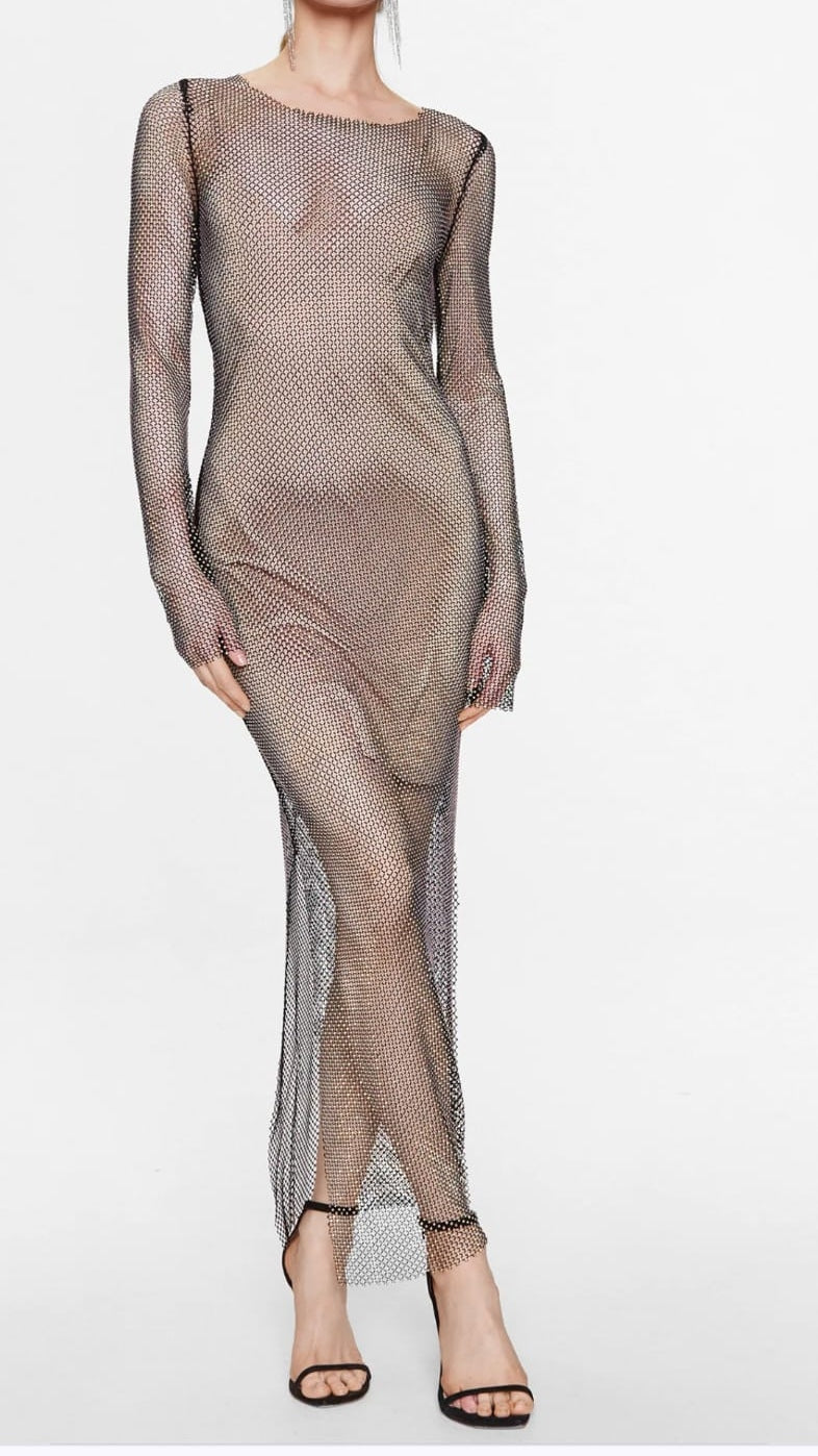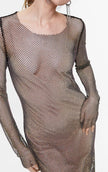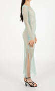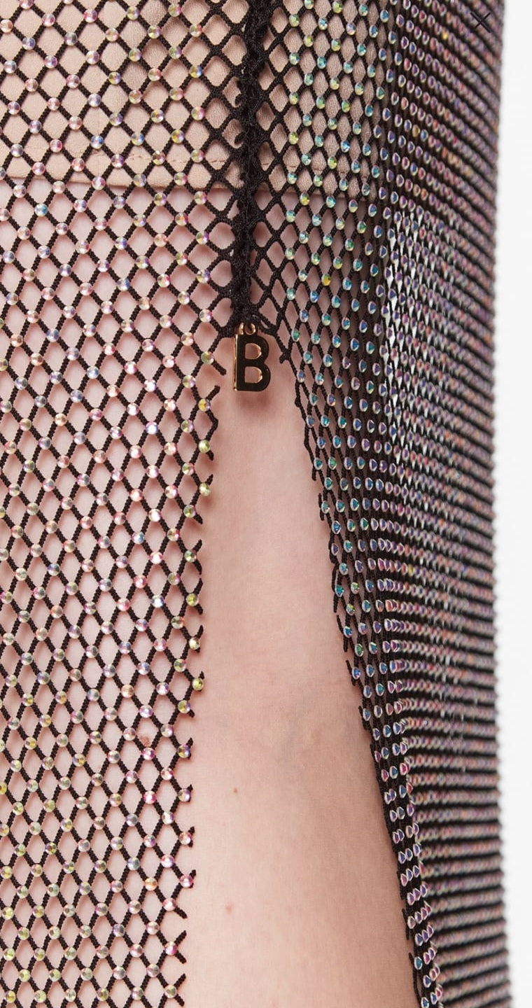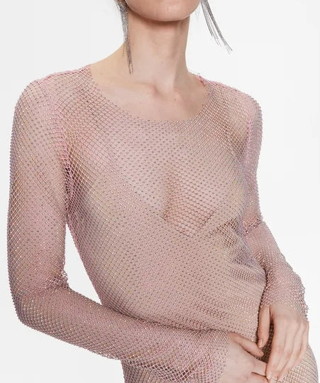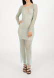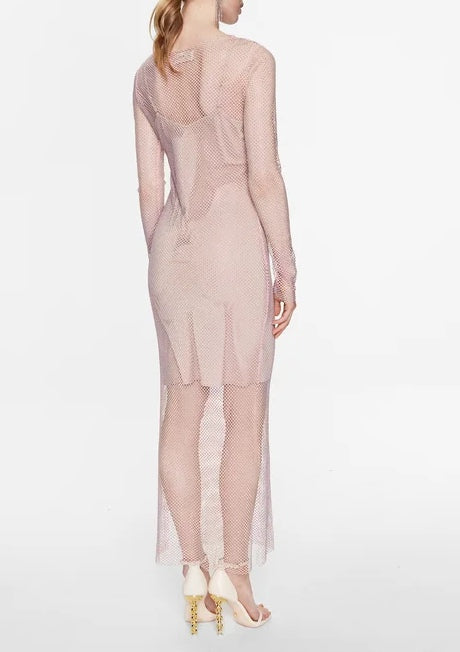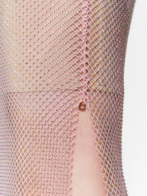 BLUGIRL ABITO in rete brillantinata con sottoveste a bretelle colore nude, disponibili anche nelle varianti colori rosa e verde. Capo ideale per un look fashion e ricercato.