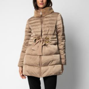 GIULIA VALLI PIUMINO in satin disponibile in beige e in nero. Caratterizzato da una cintura in vita e da un collo di calda pelliccia. Elegante e sofisticato, questo soprabito è progettato per mantenerti caldo e protetto valorizzando al tempo stesso qualsiasi outfit.