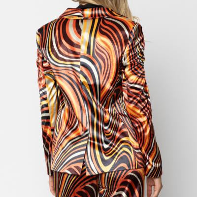 GIULIA VALLI GIACCA monopetto in satin, caratterizzata da una fantasia multicolore. Presenta una chiusura a bottone singolo e due tasche laterali con patta. La sua raffinatezza ed eccentricità la rendono un capo versatile che si abbina perfettamente al pantalone abbinato o ad un elegante top nero.