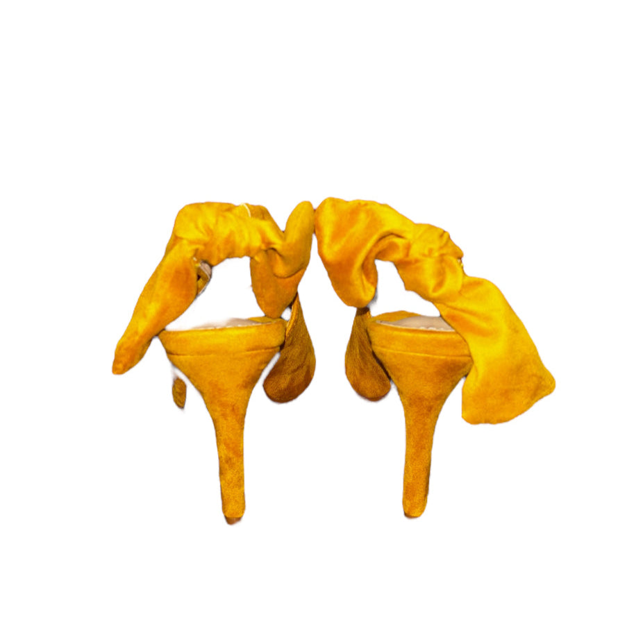 Sandalo in eco pelle scamosciato chiusura con fiocco tacco 10