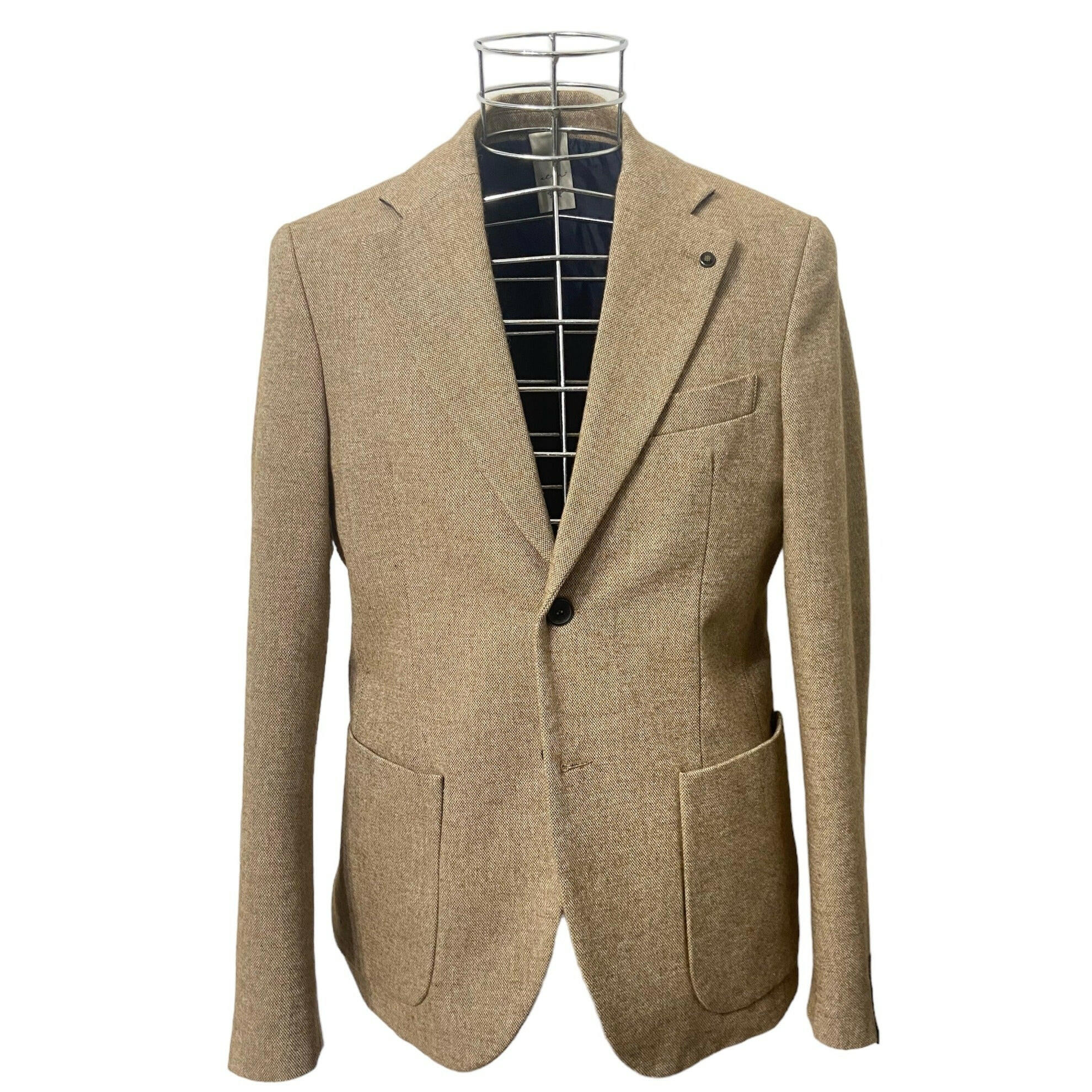ALTATENSIONE GIACCA monopetto in un elegante color beige. Presenta due bottoni neri, due tasche ampie e un taschino a filo in alto. Ragiona con stile e sicurezza con questo blazer da uomo classico e senza tempo. Un capo d'abbigliamento altamente versatile, un must-have per chi apprezza il lusso e la qualità.