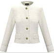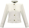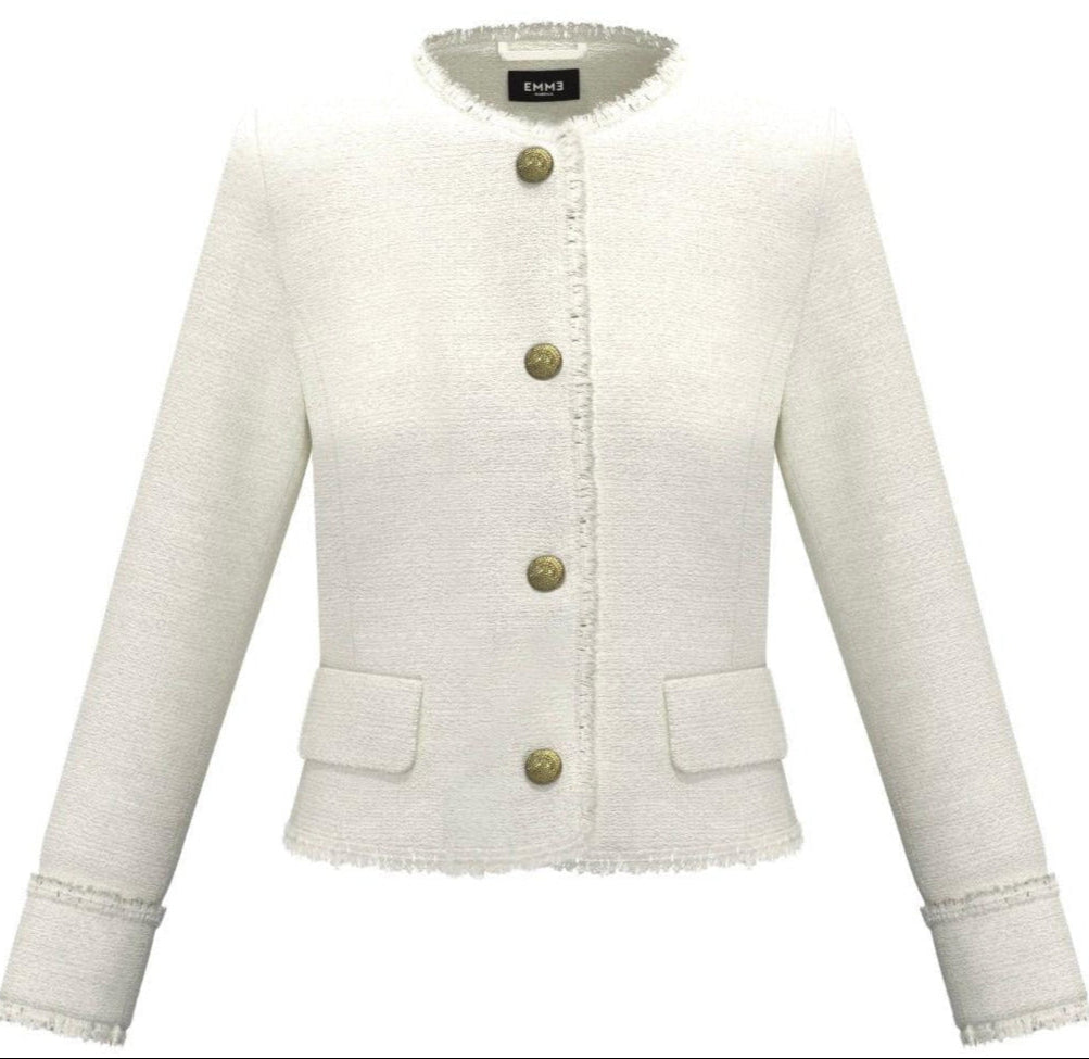 EMME MARELLA GIACCA di cotone e lino stretch perfetta per mettere in evidenza la silhouette con il suo fit sfiancato. Il collo a giro e la chiusura con bottoni personalizzati a vista aggiungono un tocco di eleganza, mentre i dettagli di sfrangiature sui bordi e le tasche con patta conferiscono un aspetto moderno e chic. Ideale per ogni occasione, dall'ufficio alle giornate più rilassate.