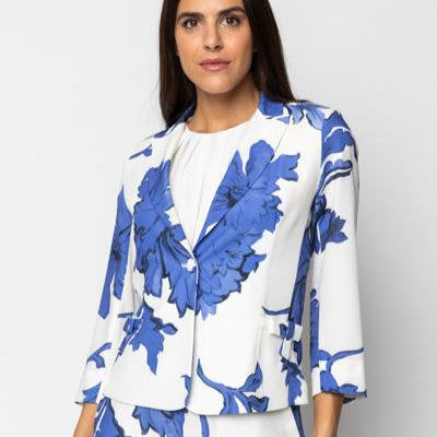 GIULIA VALLI GIACCA da donna monopetto, corta, con bottone singolo, tasche laterali con fiocco disponibile a fondo bianco con motivo floreale. Elegante e sofisticata è perfetta per un evento da giorno.
