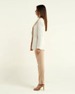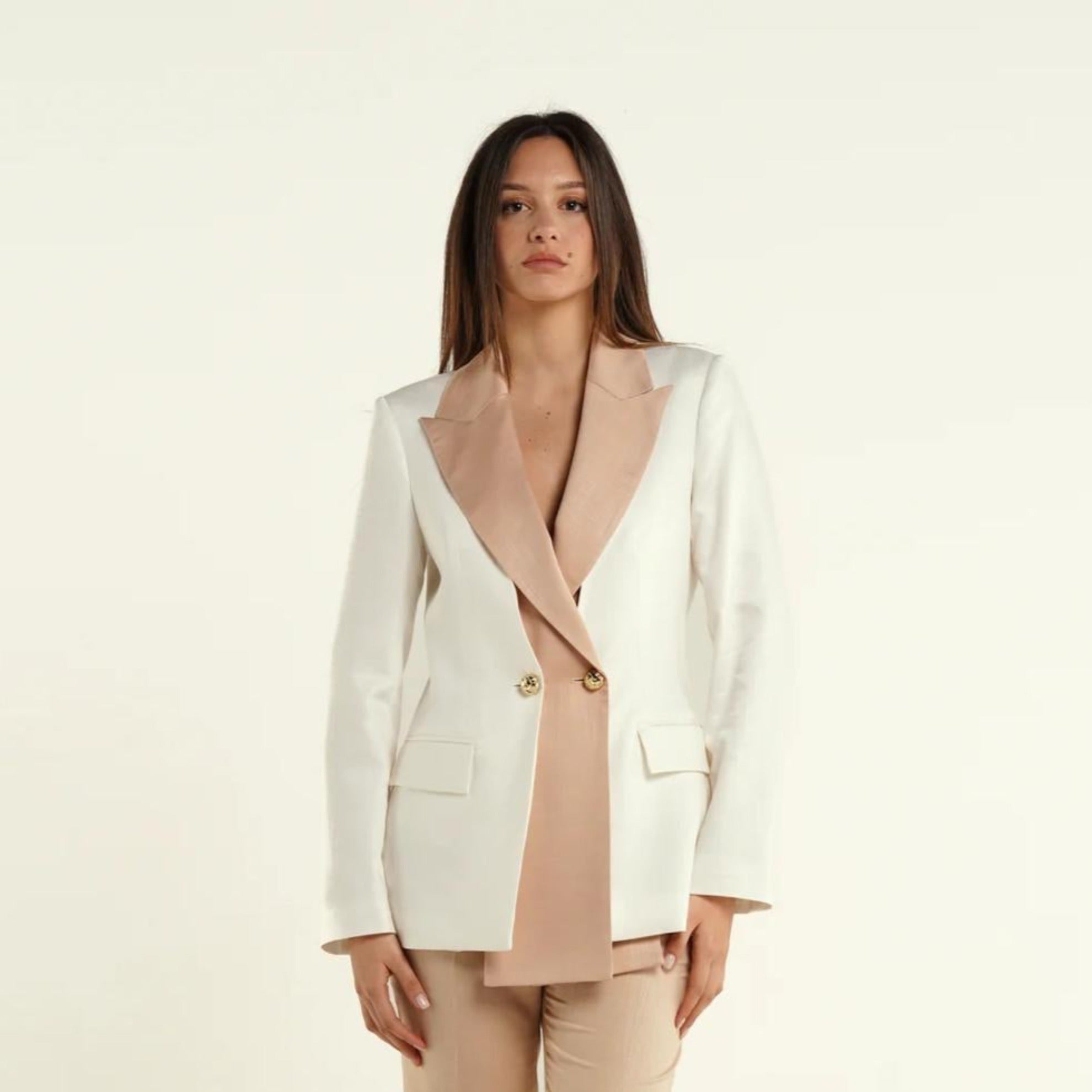 NIKAMO GIACCA da donna doppiopetto con collo staccato a contrasto in tecnoviscosa e bottoni in metallo color oro, maniche lunghe, tasche laterali con patta e finale asimmetrico sul davanti.