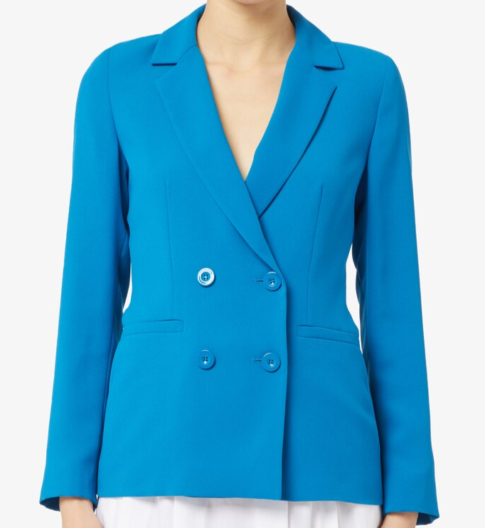 EMME MARELLA GIACCA doppiopetto in crêpe fluido foderato. Linea semiaderente, collo a rever, maniche lunghe con spalline. Chiusura con bottoni e tasche a filetto. Abbinala al pantalone coordinato per un look completo e di classe.