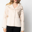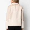 Giaccone eco-montone con collo vulcano e dettagli a contrasto