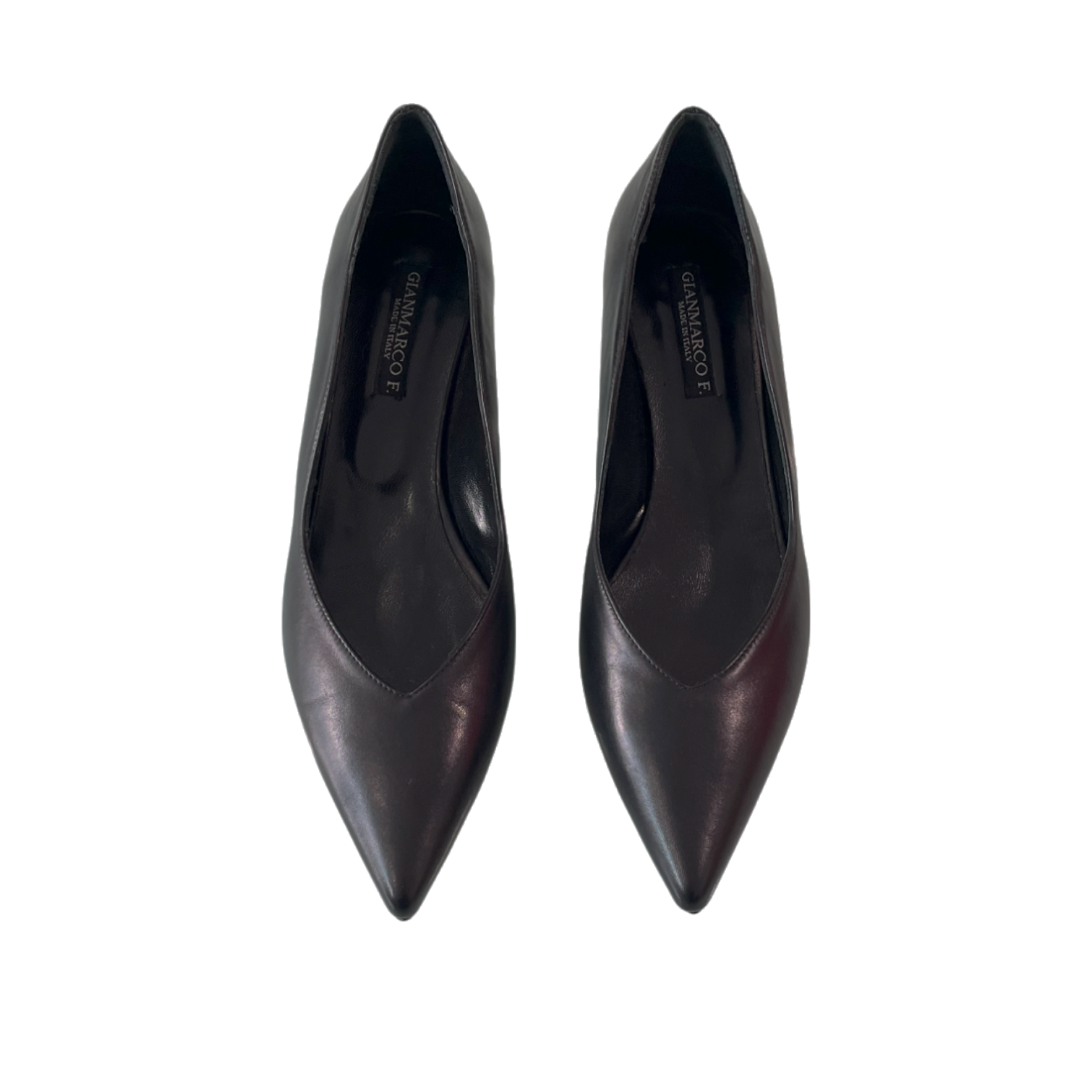 GIANMARCO F. DÉCOLLETÉ in pelle disponibile in due colori. Vanta un tacco basso e una cucitura ondulata lungo i bordi, che le rende ideali per chi preferisce un'altezza medie. Sono la scelta perfetta per eventy, lavoro