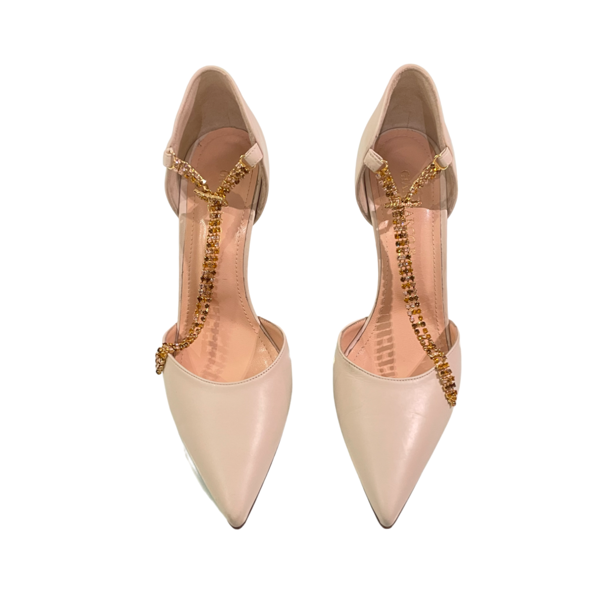 GIANMARCO F. DÉCOLLETÉ in pelle con cinturino in strass, disponibile in due colori. Aperti lateralmente e con un tacco alto, sono perfetti per essere sfoggiati ad un evento di classe con un abito elegante. Conferirai un tocco di luce all’intero outfit e splenderai come una diva del cinema.
