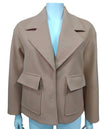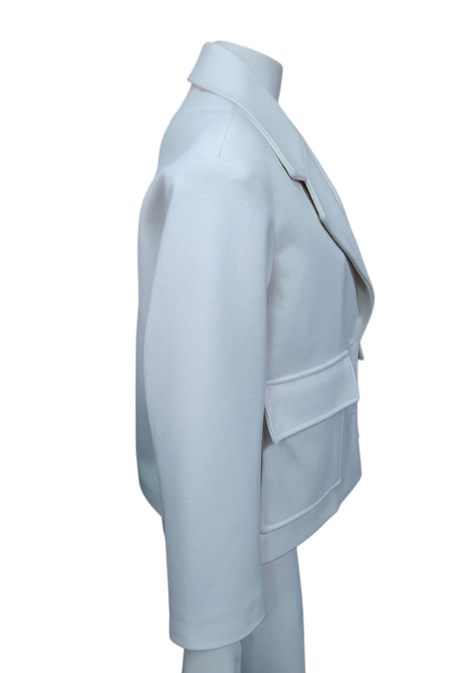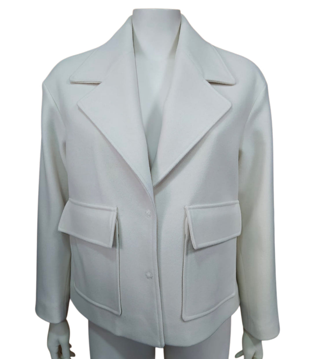 FEMMINA giubbino corto realizzato in panno lana, con tasche con patta e rever classico ampio, abbottonatura nascosta.
