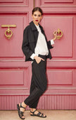 KARMA GIUBBOTTO da donna corto, con collo a camicia, maniche lunghe, tasche laterali con patta, chiusura con bottoni e dalla vestibilità over. Abbina questo giubbotto su diversi tipi di outfit per un look sportivo e alla moda.