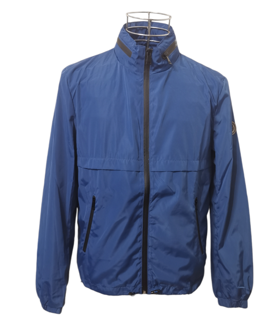 OUTFIT GIUBBOTTO da uomo modello kway con chiusura e tasche con zip. Cappuccio estraibile ed elastico regolabile al fondo. Abbina questo versatile giubbotto su diversi tipi di outfit ma restando sempre composto e alla moda.