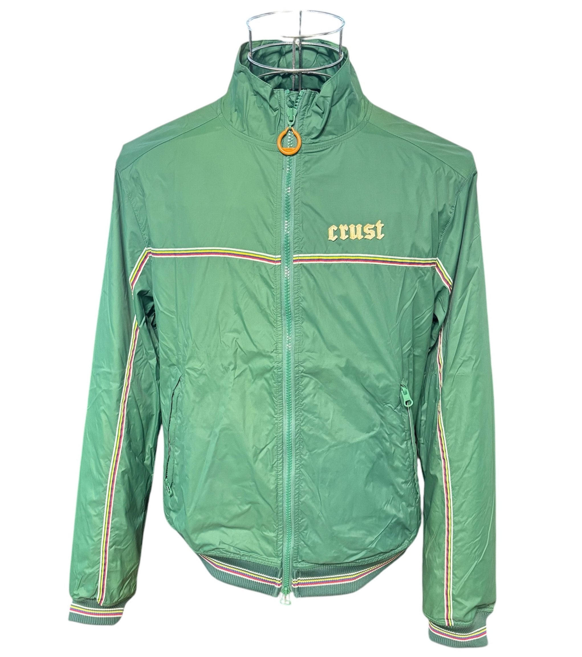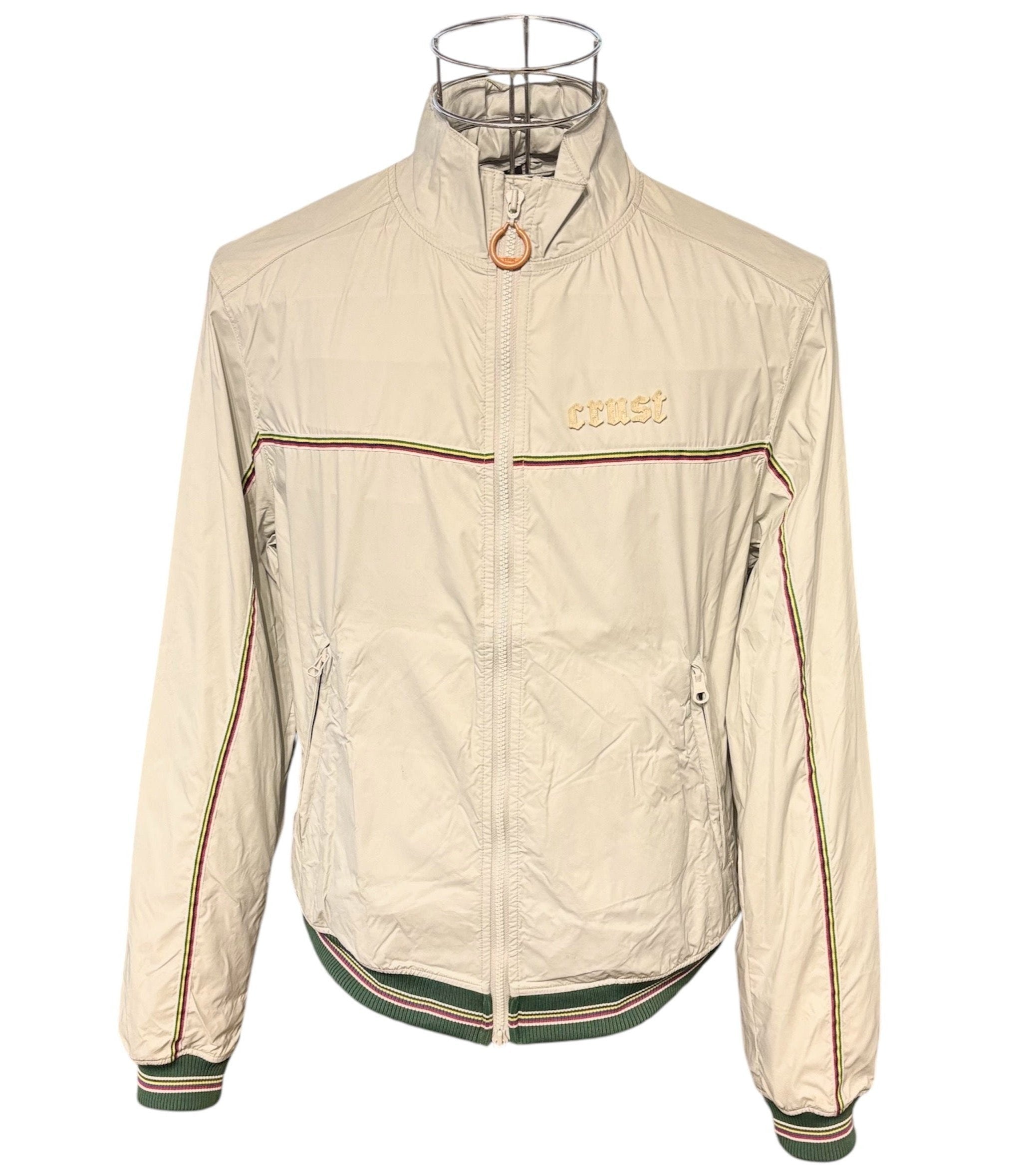 CRUST GIUBBINO uomo corto, sfoderato e impermeabile. Modello con elastico e polsini a contrasto in tessuto multicolore.