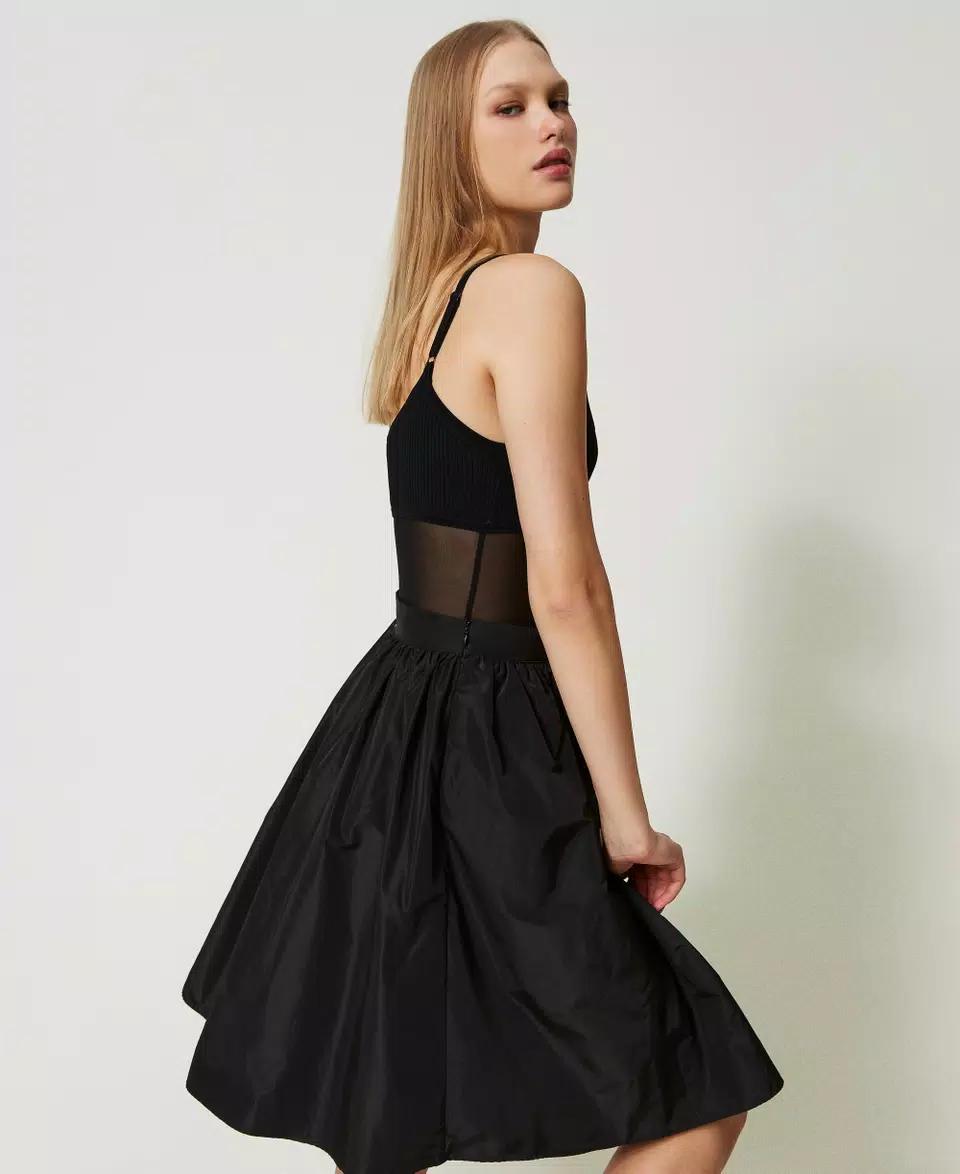 ACTITUDE TWINSET GONNA modello mini skirt, in taffetà con fiocco asimmetrico, tasche ai fianchi, chiusura con zip laterale, sfoderata, dalla linea ad A.