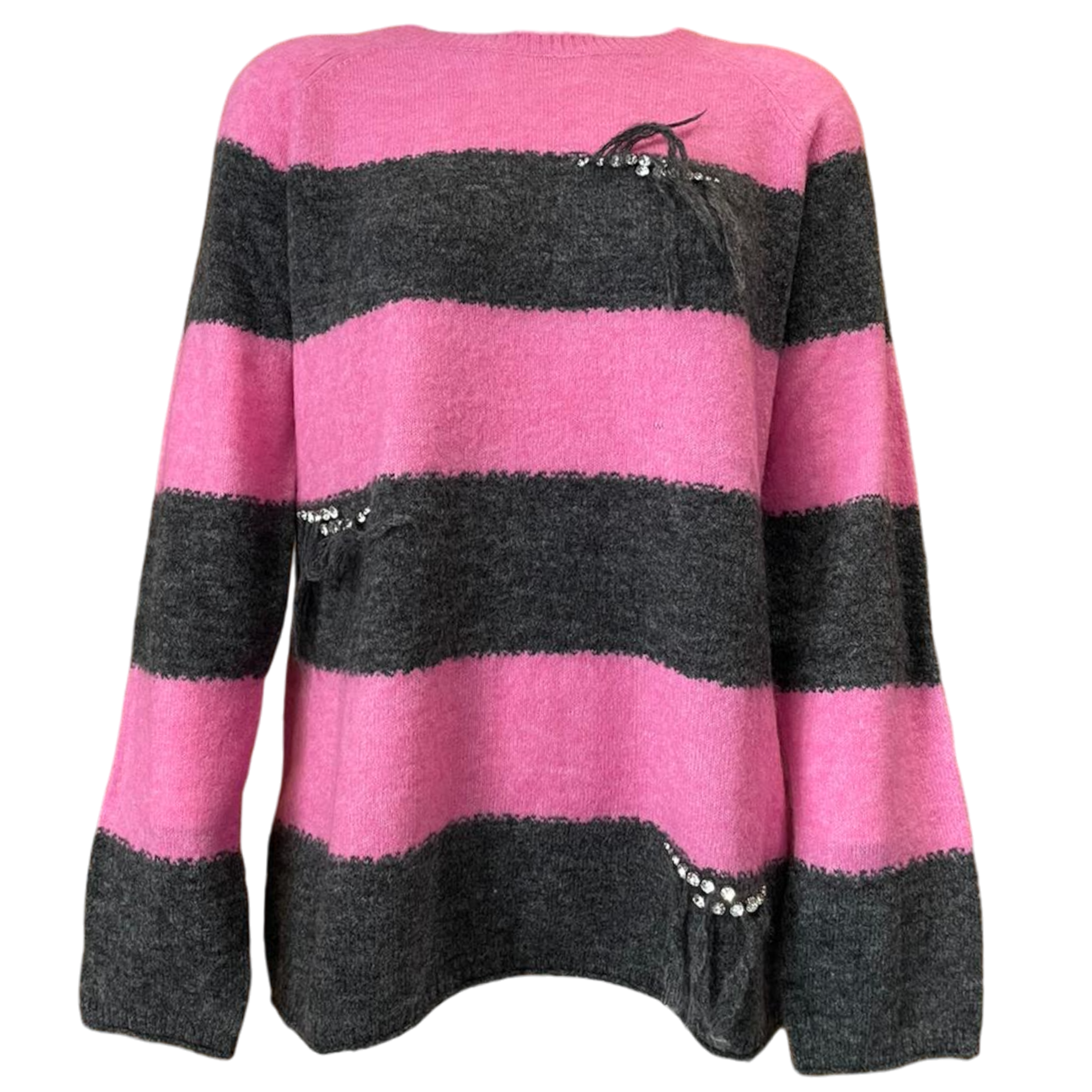 TWINSET ACTITUDE MAGLIA maxi a righe in misto lana e mohair con piccole frange e castoni applicati effetto rotture, cuciti a mano. Fit morbido, girocollo e maniche lunghe da indossare su tutto. Morbida e calda, per un look giornaliero dal clima freddo.