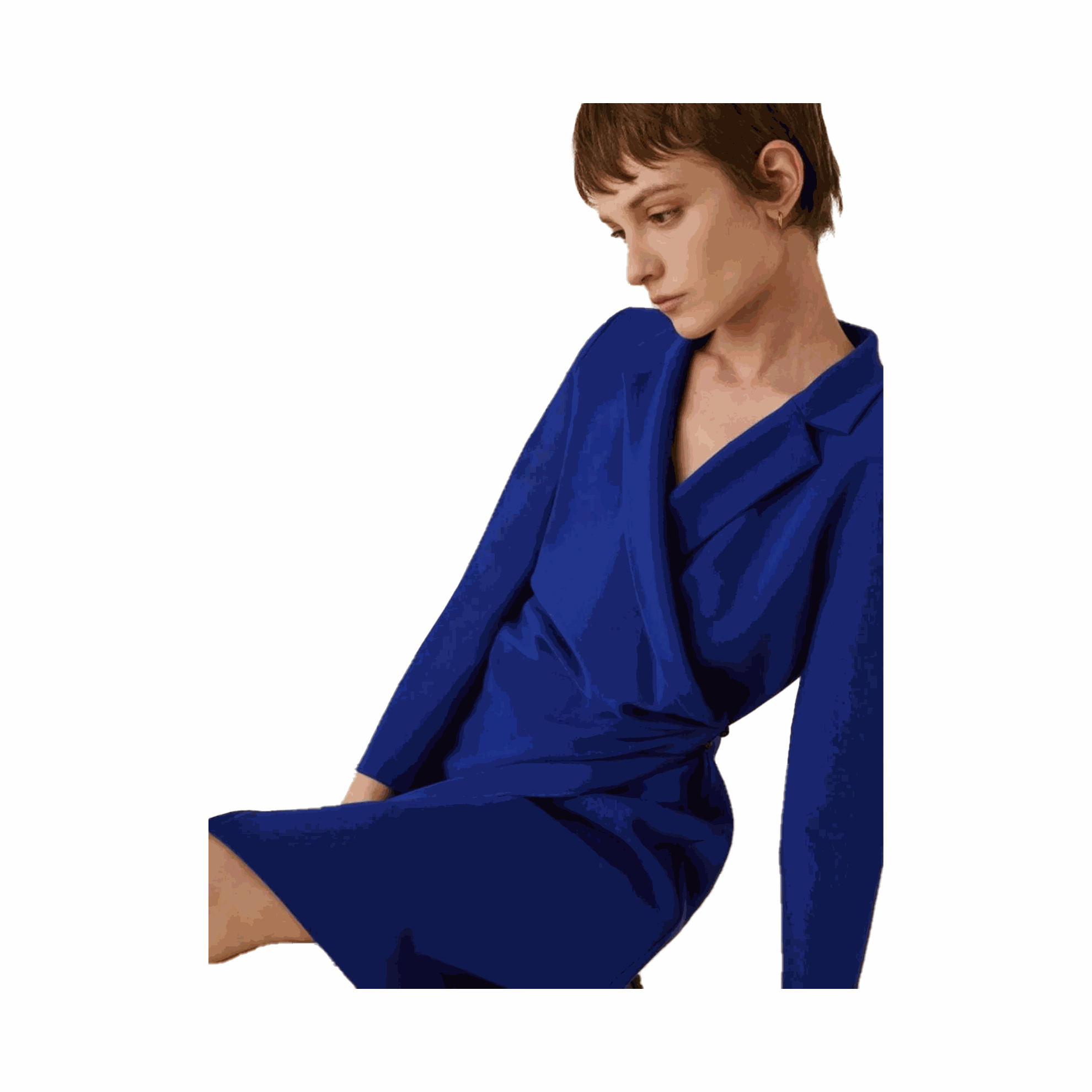 EMME MARELLA ABITO aderente a portafoglio con drappeggio sul fianco. Chiusura con bottone sul fianco. Fondo davanti più lungo. Un elegante abito da donna, progettato con un disegno unico che aderisce al tuo corpo, assicurando comfort e stile.