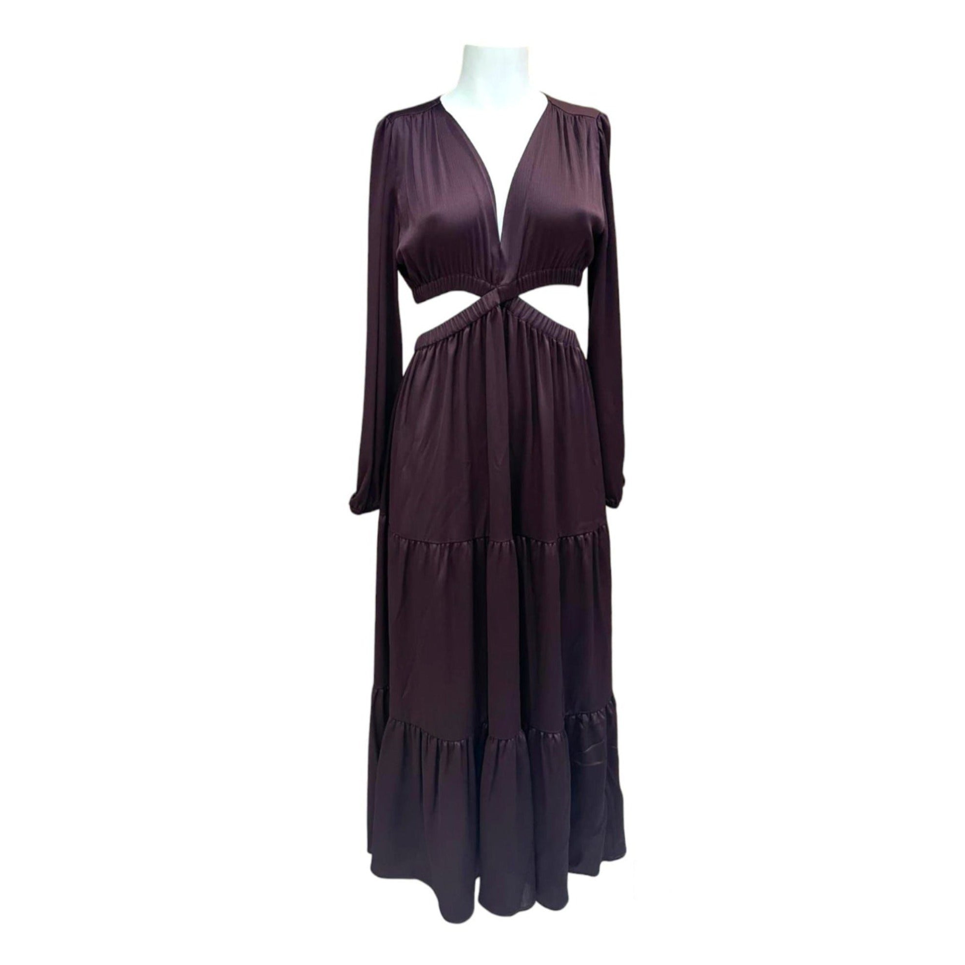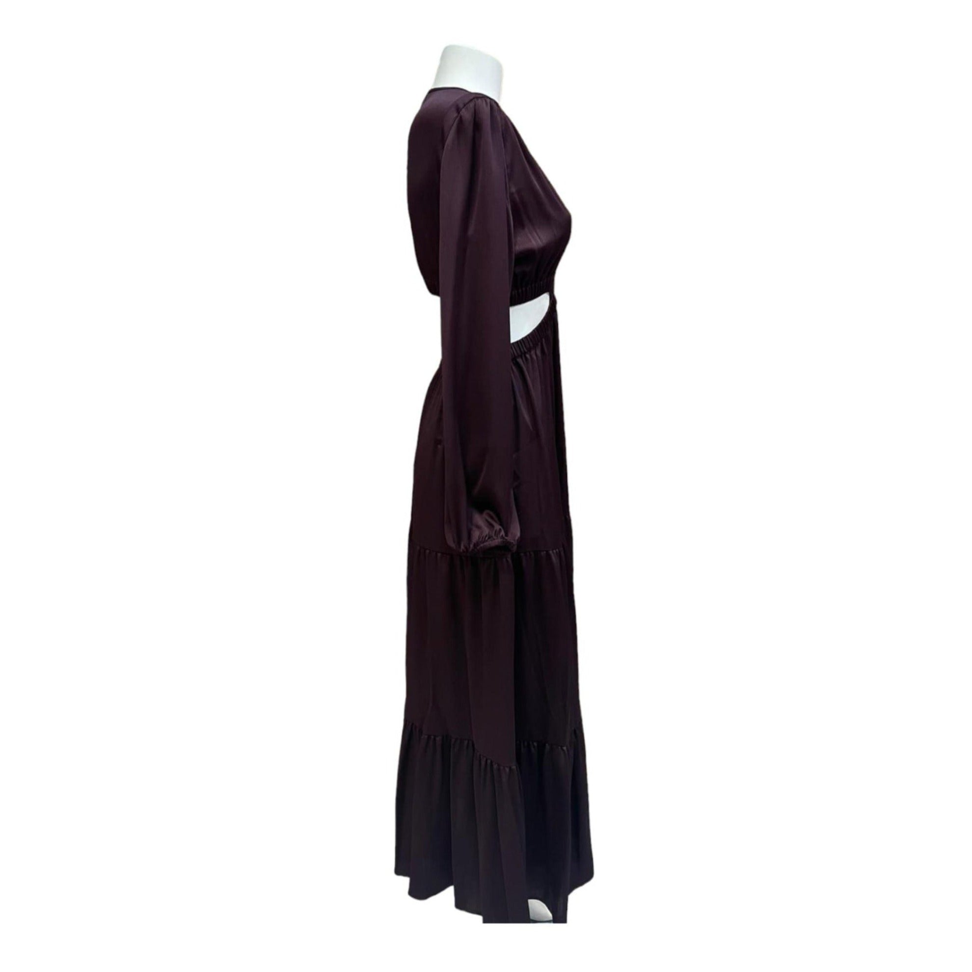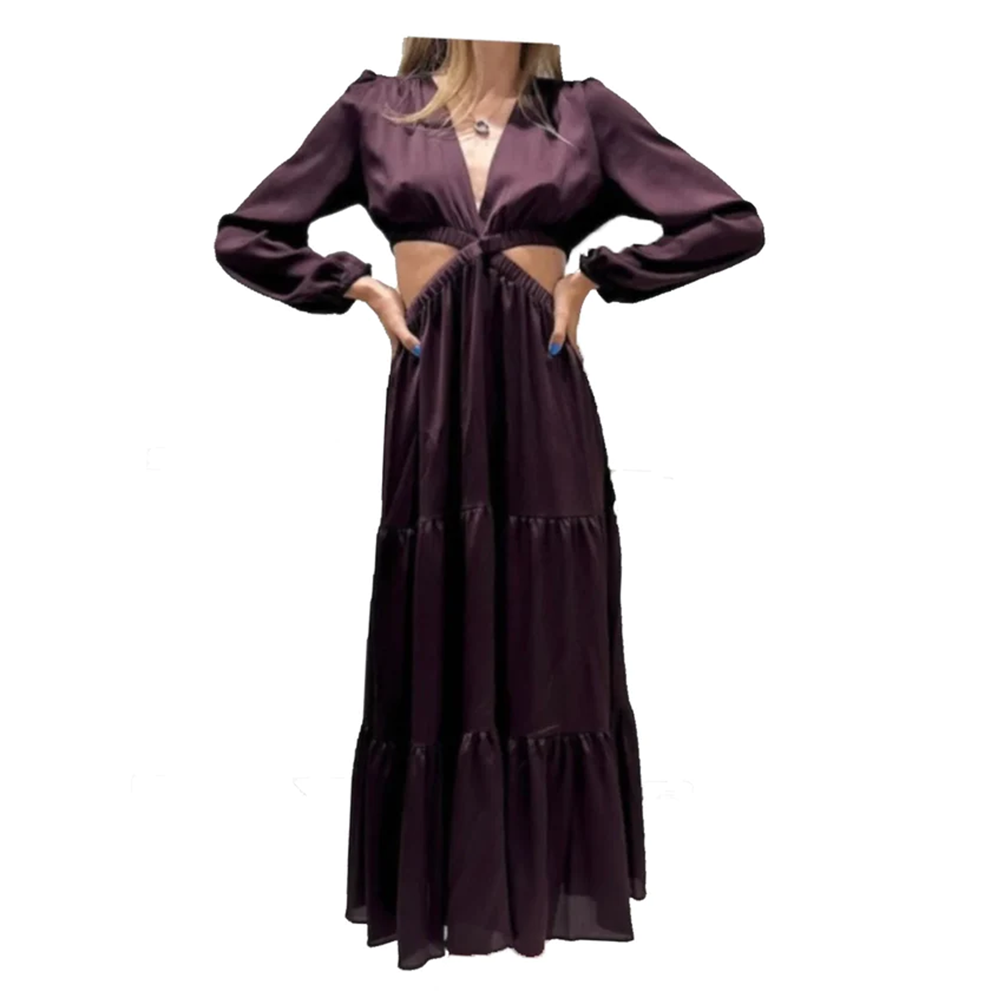 EMME MARELLA ABITO lungo in raso con apertura sui fianchi e sulla schiena. Presenta uno scollo a V, maniche lunghe con spalle arricciate, polsini con molla e una gonna lunga con balze. Un abito elegante e sofisticato pensato per farti brillare in ogni occasione speciale.
